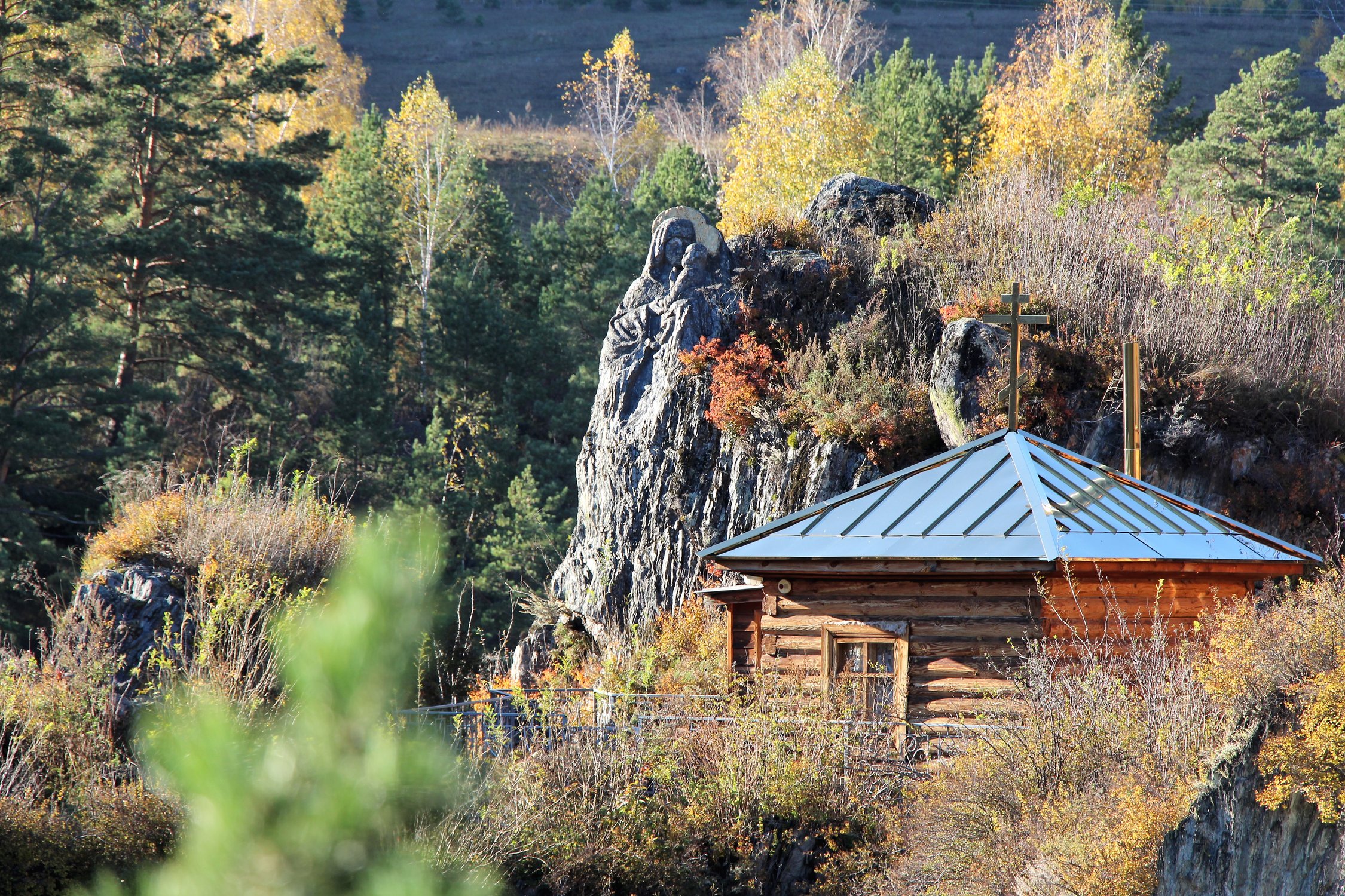 Это видение открывается при взгляде на небольшую скалу, возвышающуюся на острове Патмос.По местным поверьям чудесная скала -указание Божье на святое место на алтайской земле.