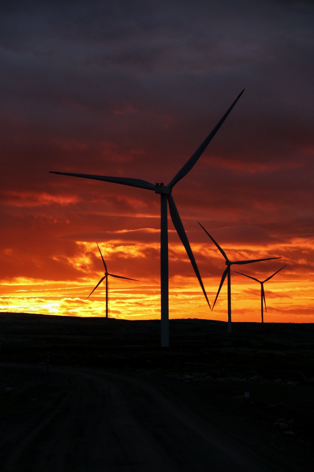 Невероятной красоты закат на самой большой ветроэлектростанции в мире за Полярным кругом, Кольской ВЭС, Мурманская область