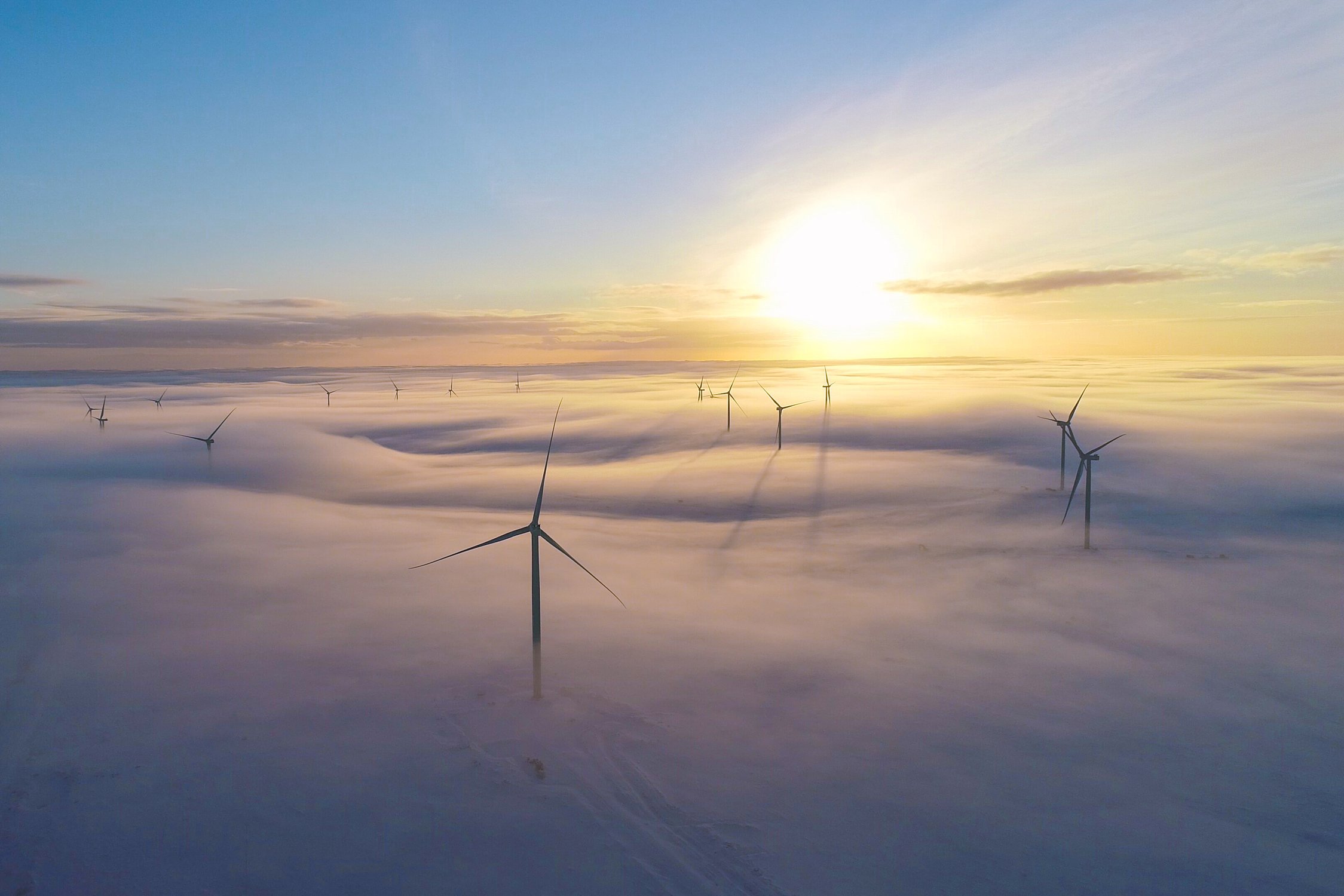 Парение в облаках над самой большой ветроэлектростанцией в мире за Полярным кругом, Кольской ВЭС, Мурманская область