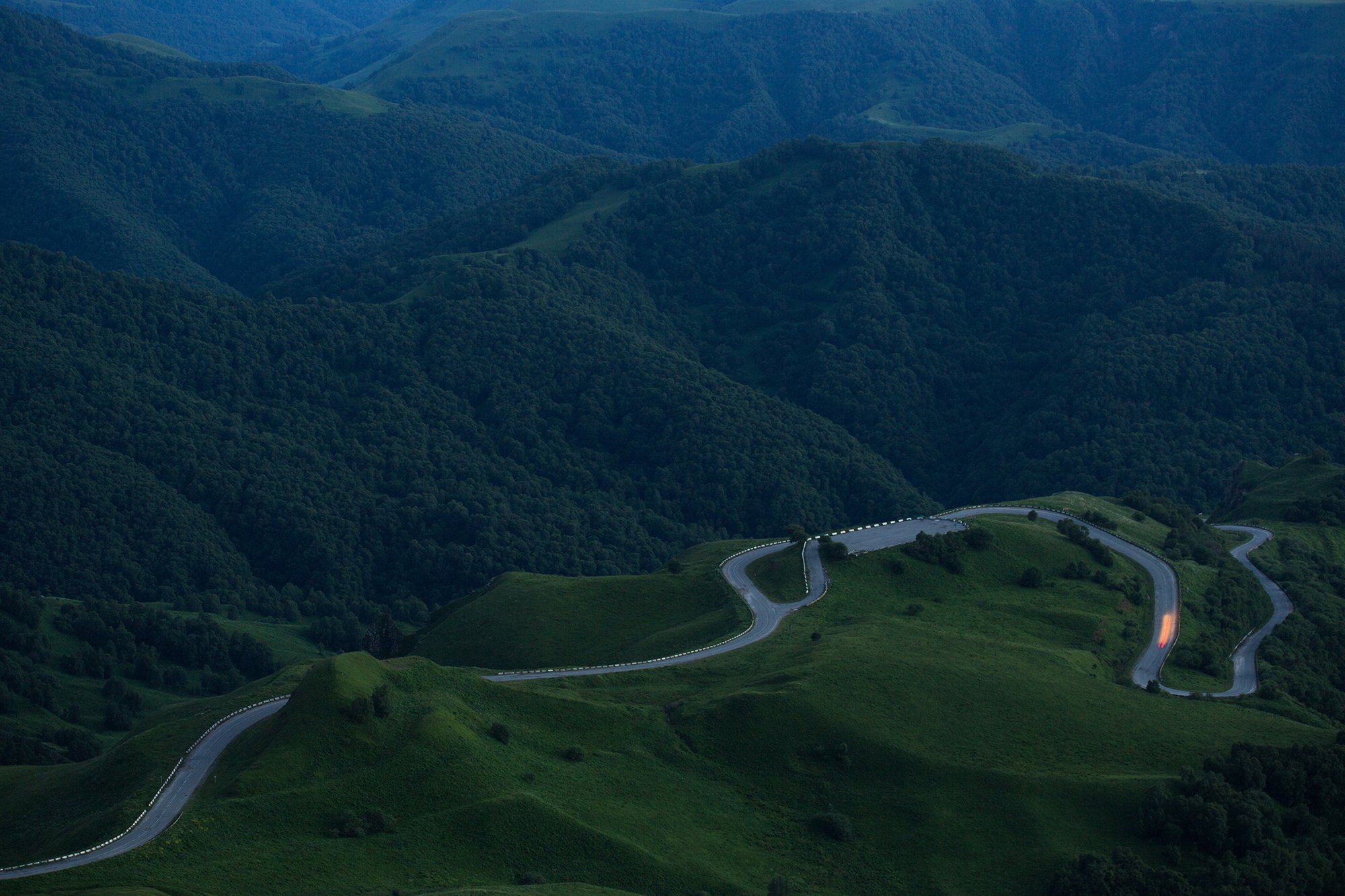 Дорога через перевал Гум-Баши после закат. Вид с места ночевки.