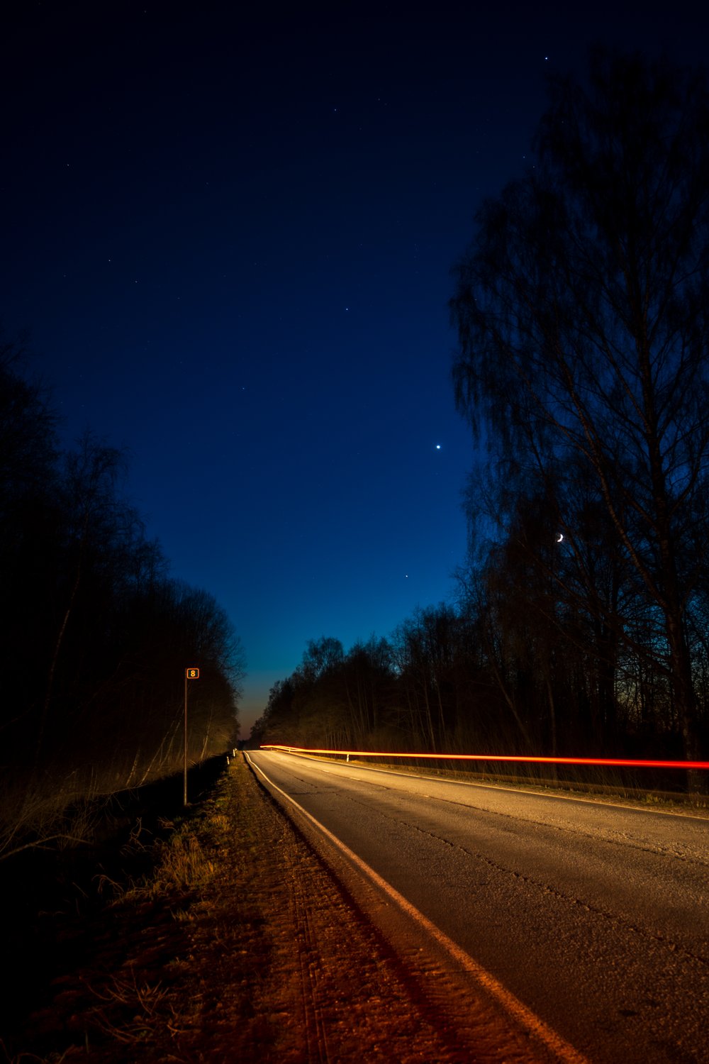 Фотография сделана где-то недалеко от г.Кингисепп. Уже была почти ночь, остановились на дороге и начал снимать, ожидая машин, а их было немного.