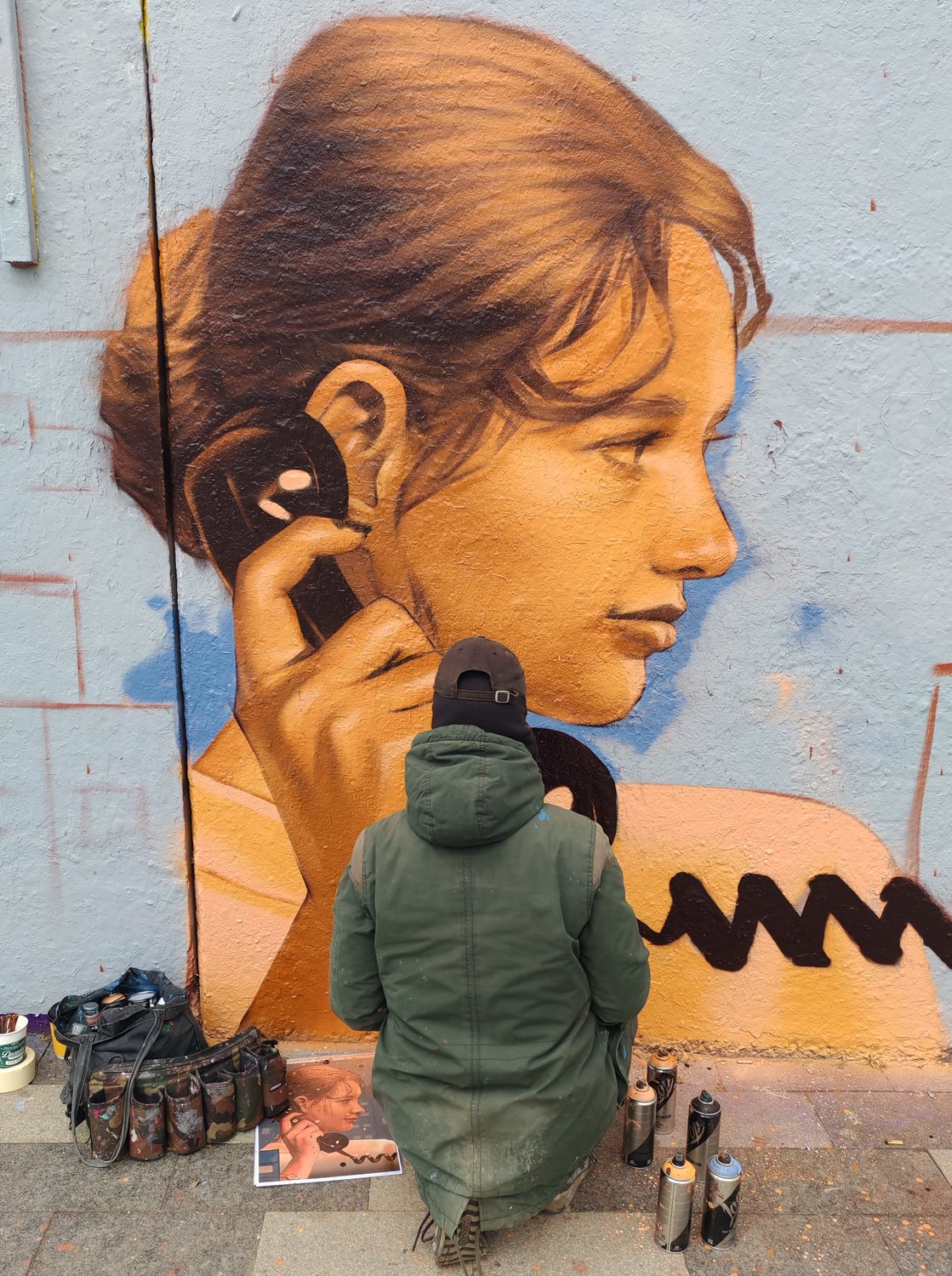 Работа мастеров стрит -арта на ограждениях Курского вокзала. ( В процессе создания. )