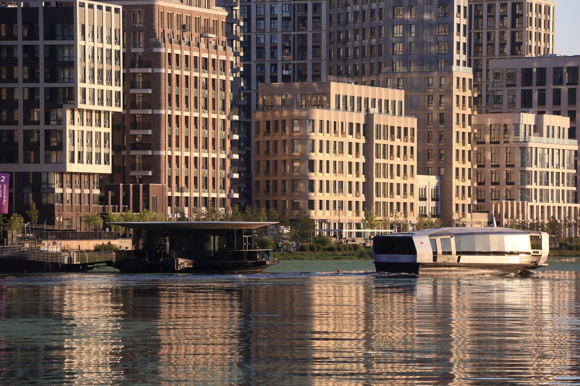 Место, отражающее современный облик Москвы, транспорт, стиль зданий и стремление к реке