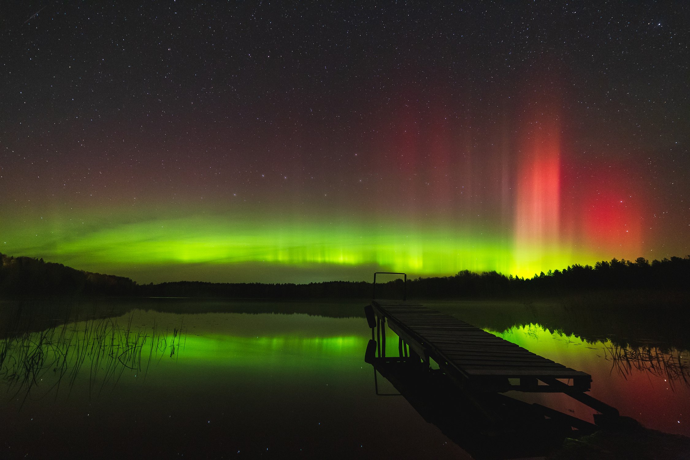 Полярное сияние на берегу Елизаровского озера, Псковская область