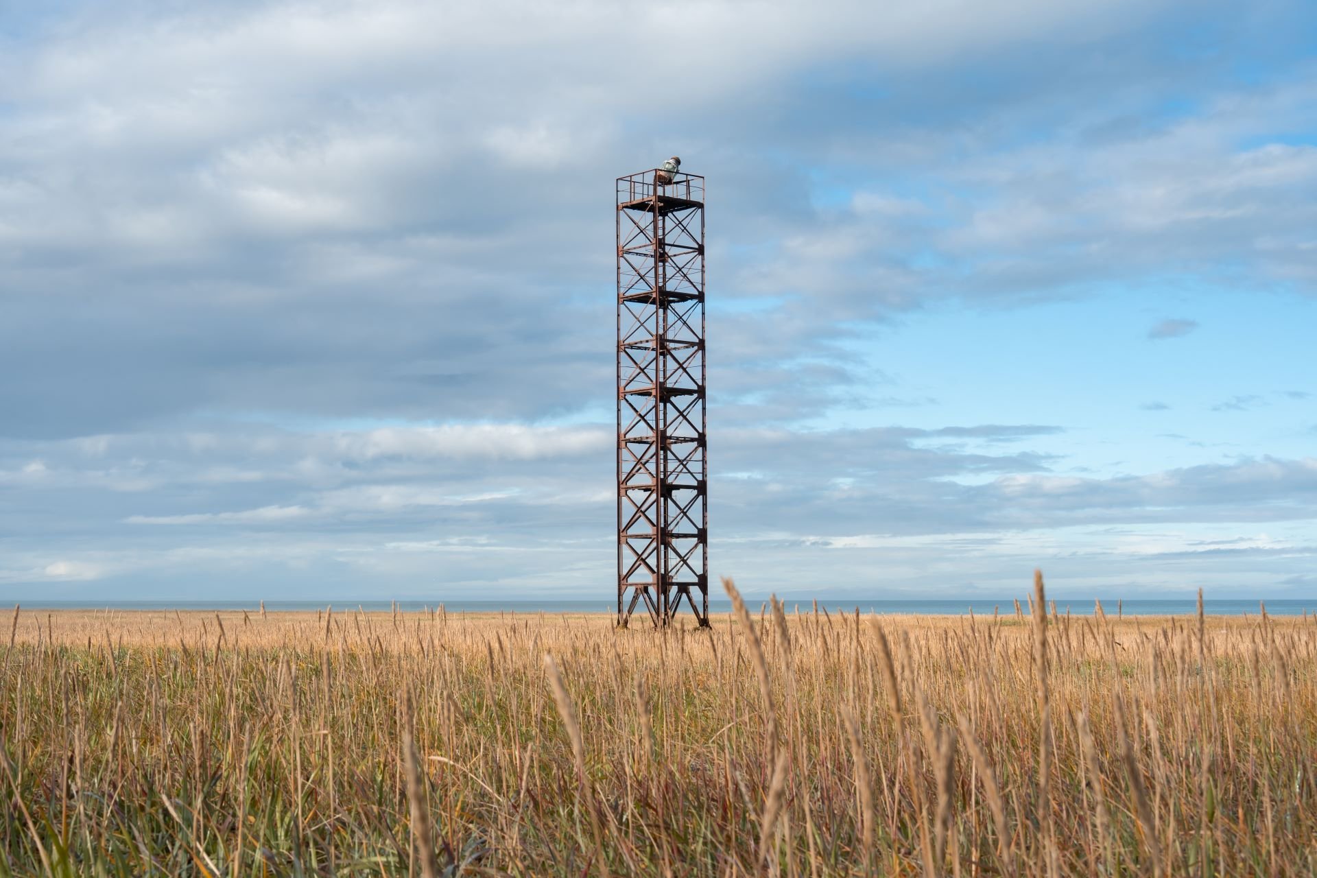 На краю одной из самых длинных кос в мире стоит старый железный маяк, который уже не работает.