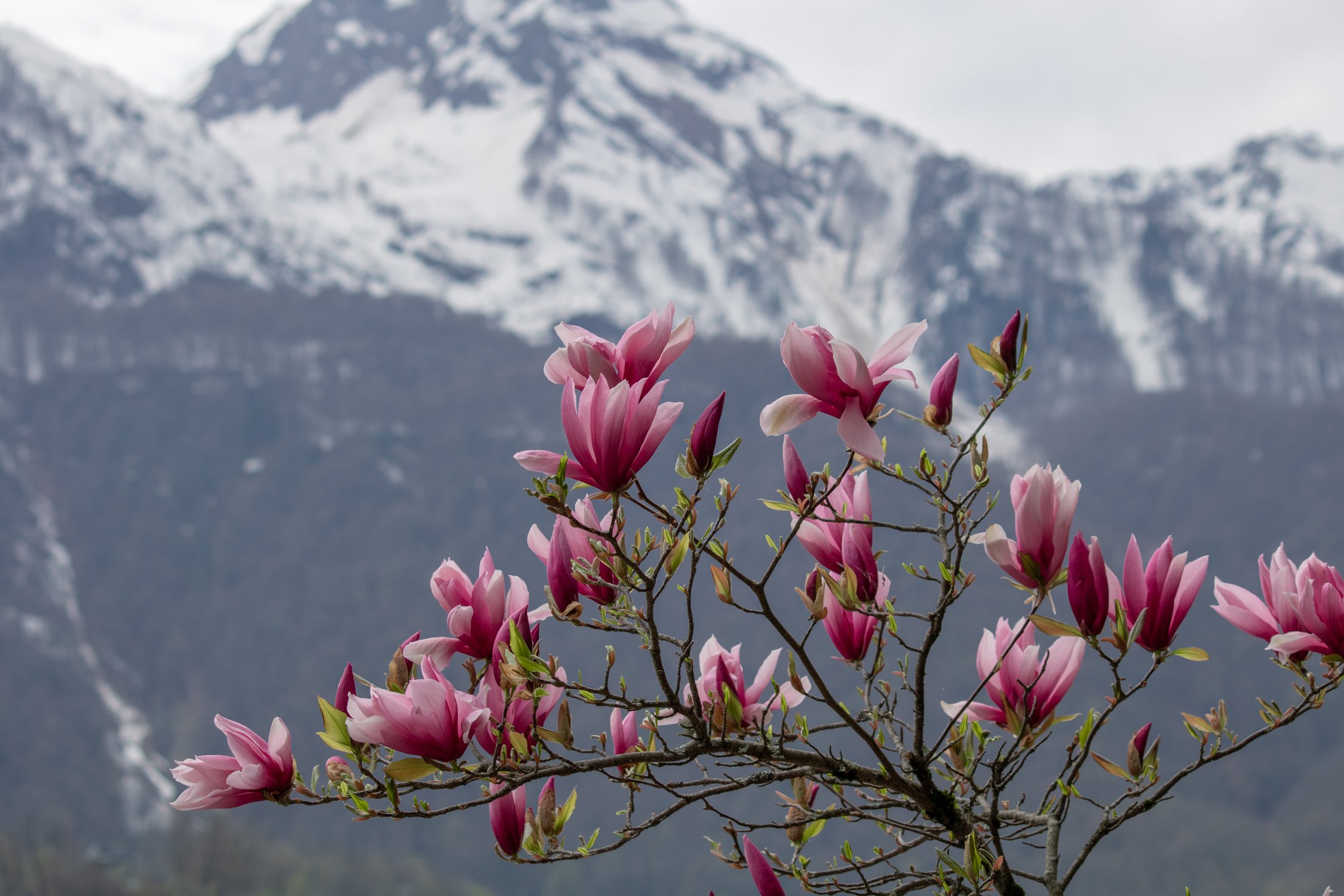 Цветение магнолии в горах Красной Поляны