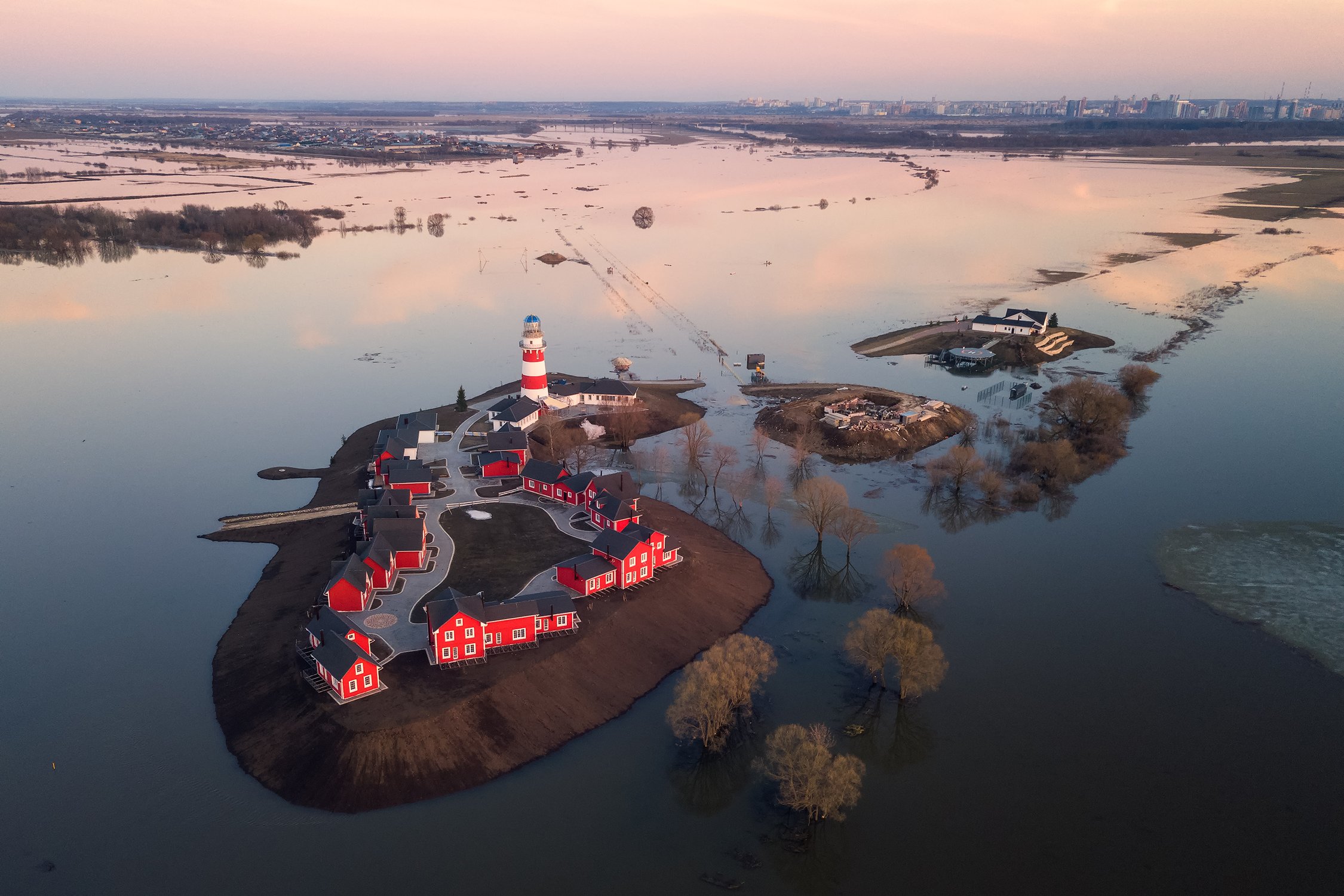 Разлив Оки близ в селе Шумашь близ Рязани, закат.
