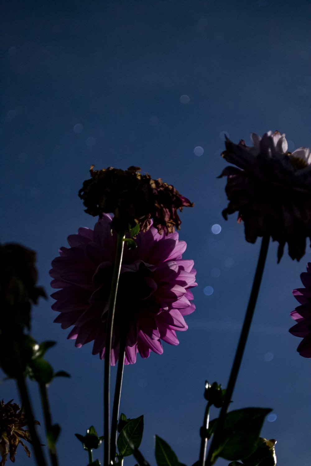 Цветы застыли в темноте, ловя свет далёких звёзд.