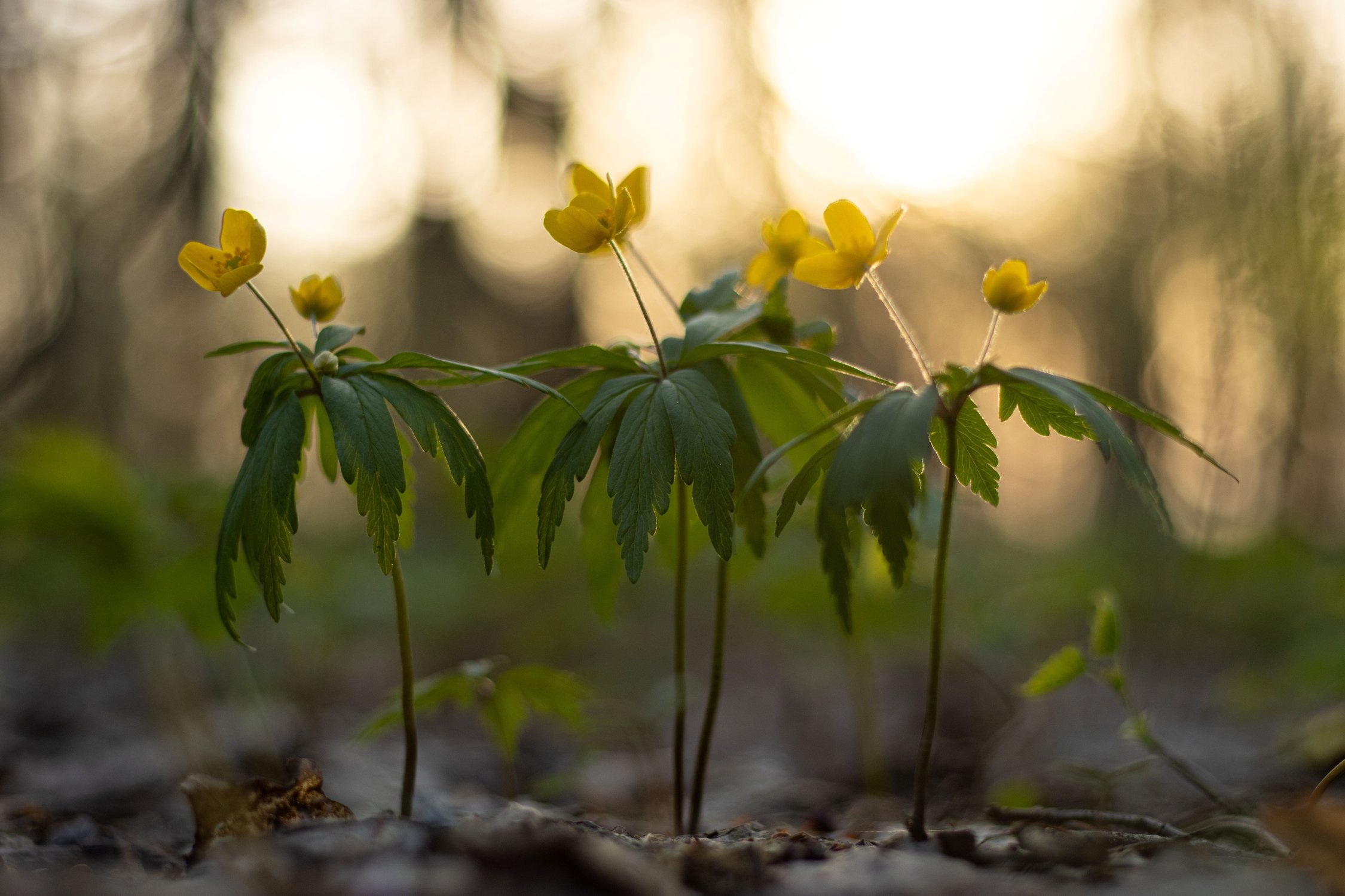 Лютиковая ветреница цветет в Подмосковных лесах.