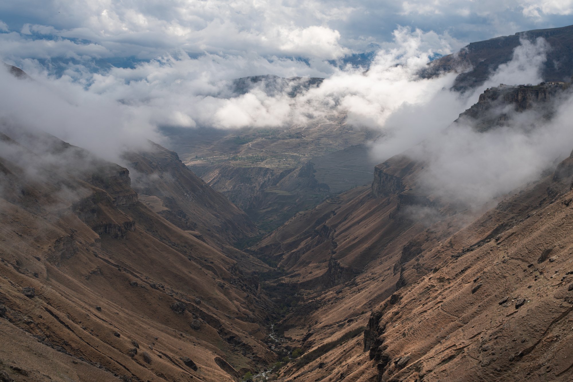 Туман над Цолотлинским каньоном - одной из природных достопримечательностей Дагестана, Находится у реки Тобот, недалеко от посёлка Хунзах.