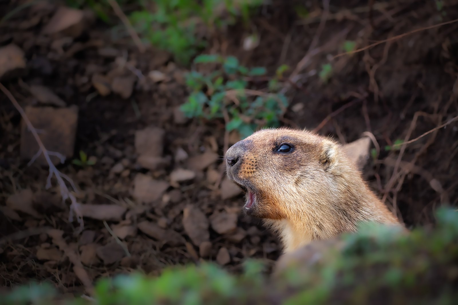 Байбак из норы пересвистывается со своими сородичами, предупреждает об опасном фотографе, который стоит над душой с большим фотоаппаратом.