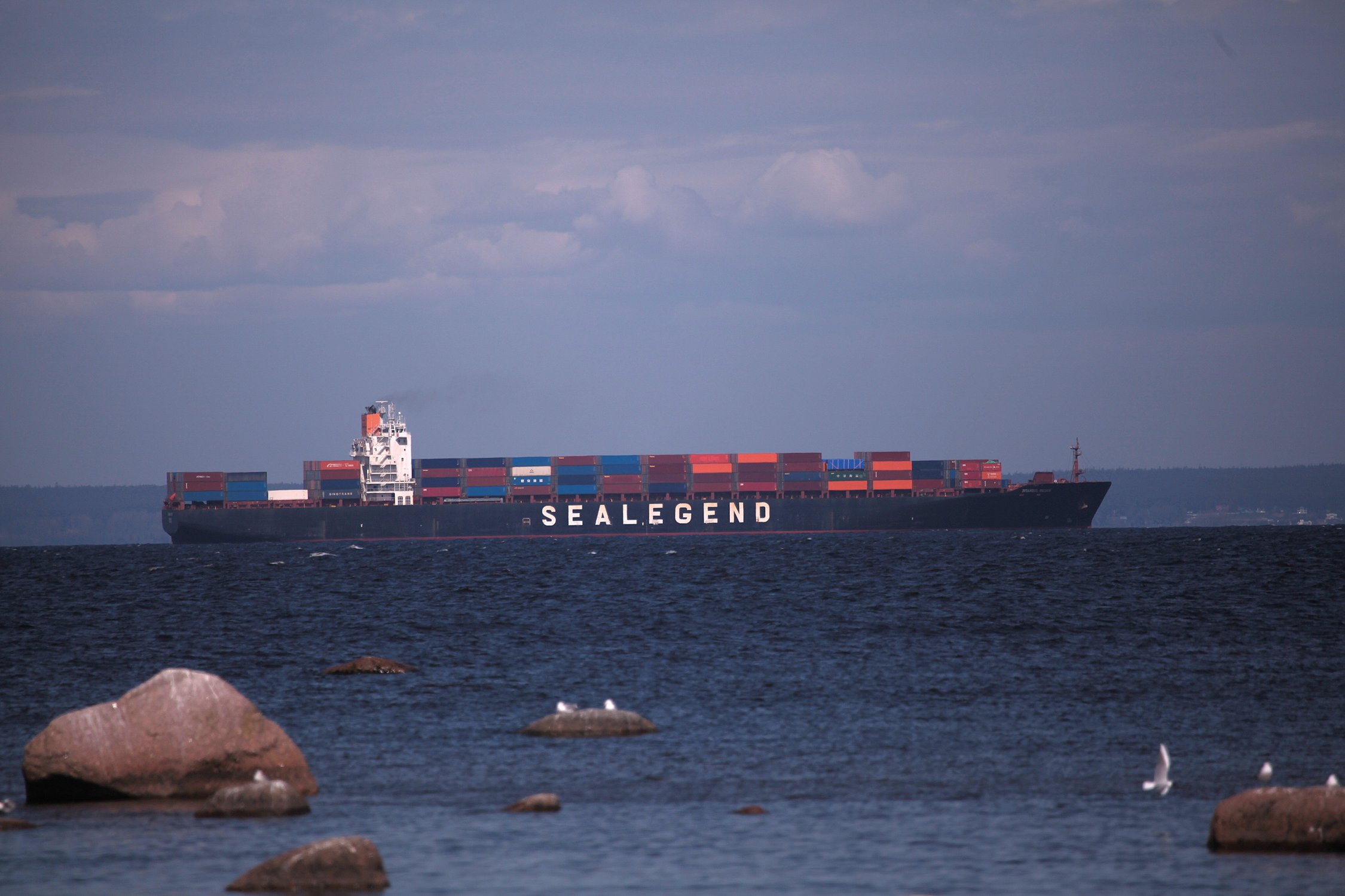 Грузовое судно в Финском заливе возле маяка Шепелёвский.
