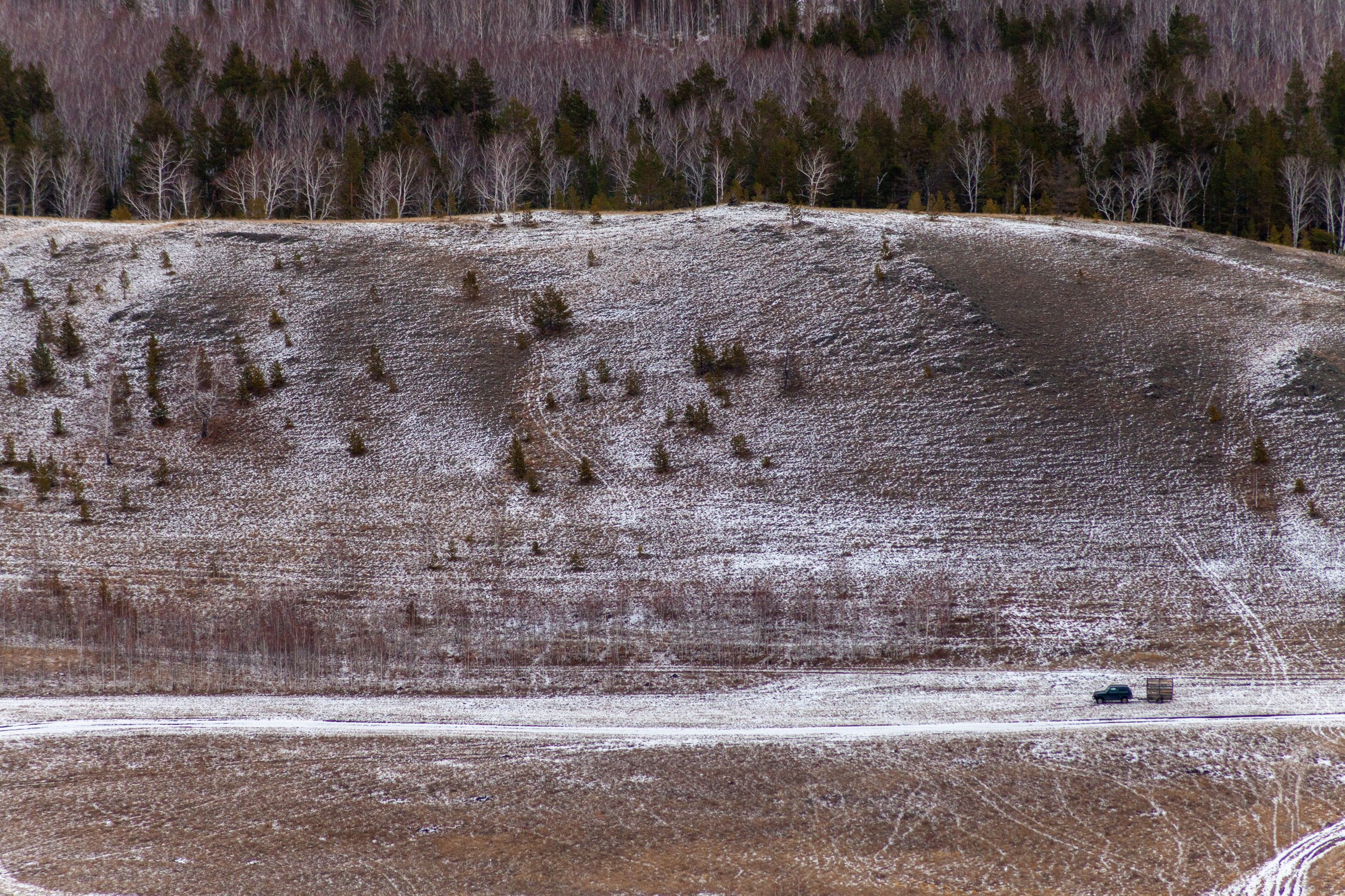 Автомобиль удачно попал в кадр для осознания масштаба. Нурали, ноябрь.