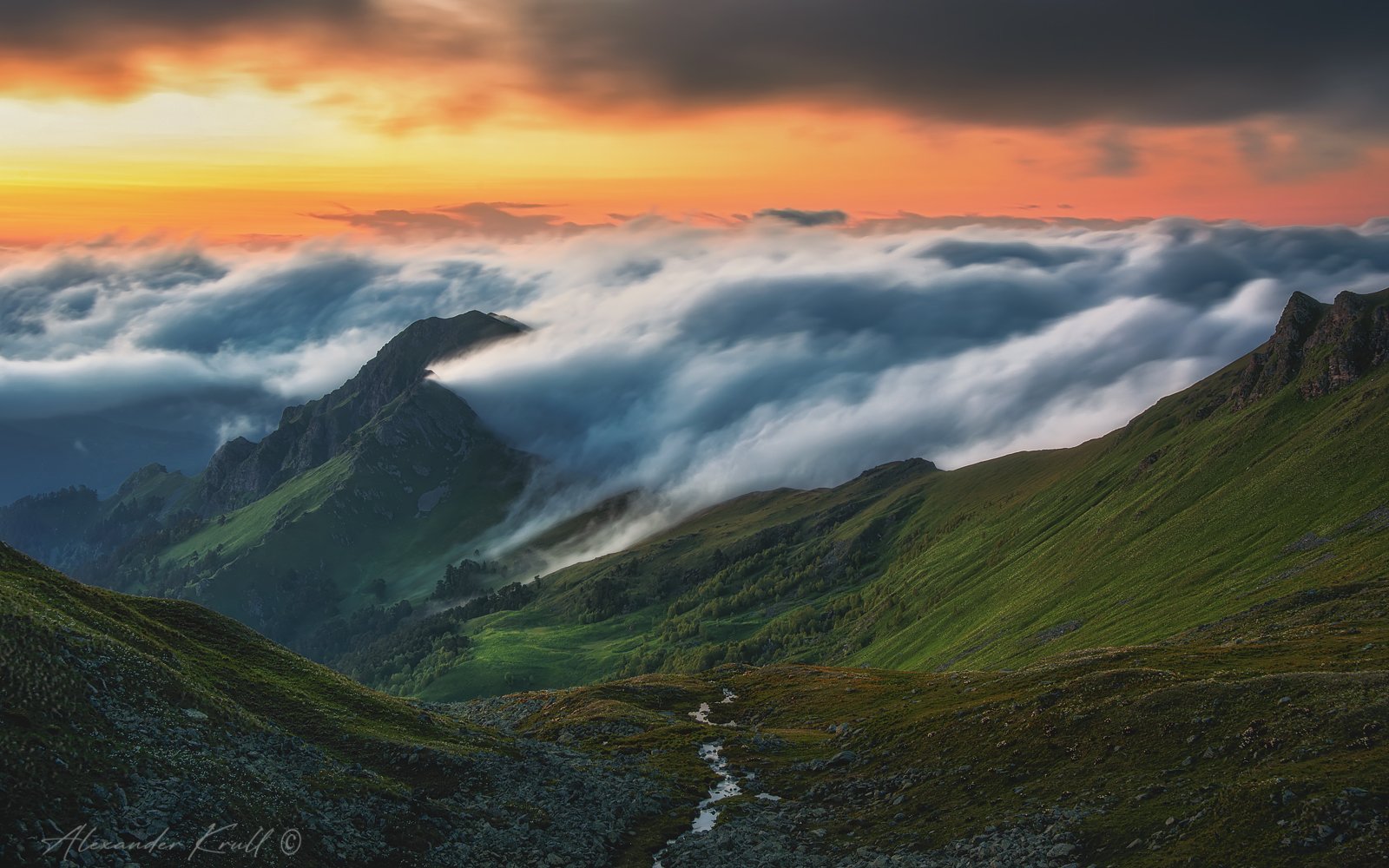 Мостовский район Краснодарского края, июнь. Вечер с видом на г. Маркопидж (2442м).