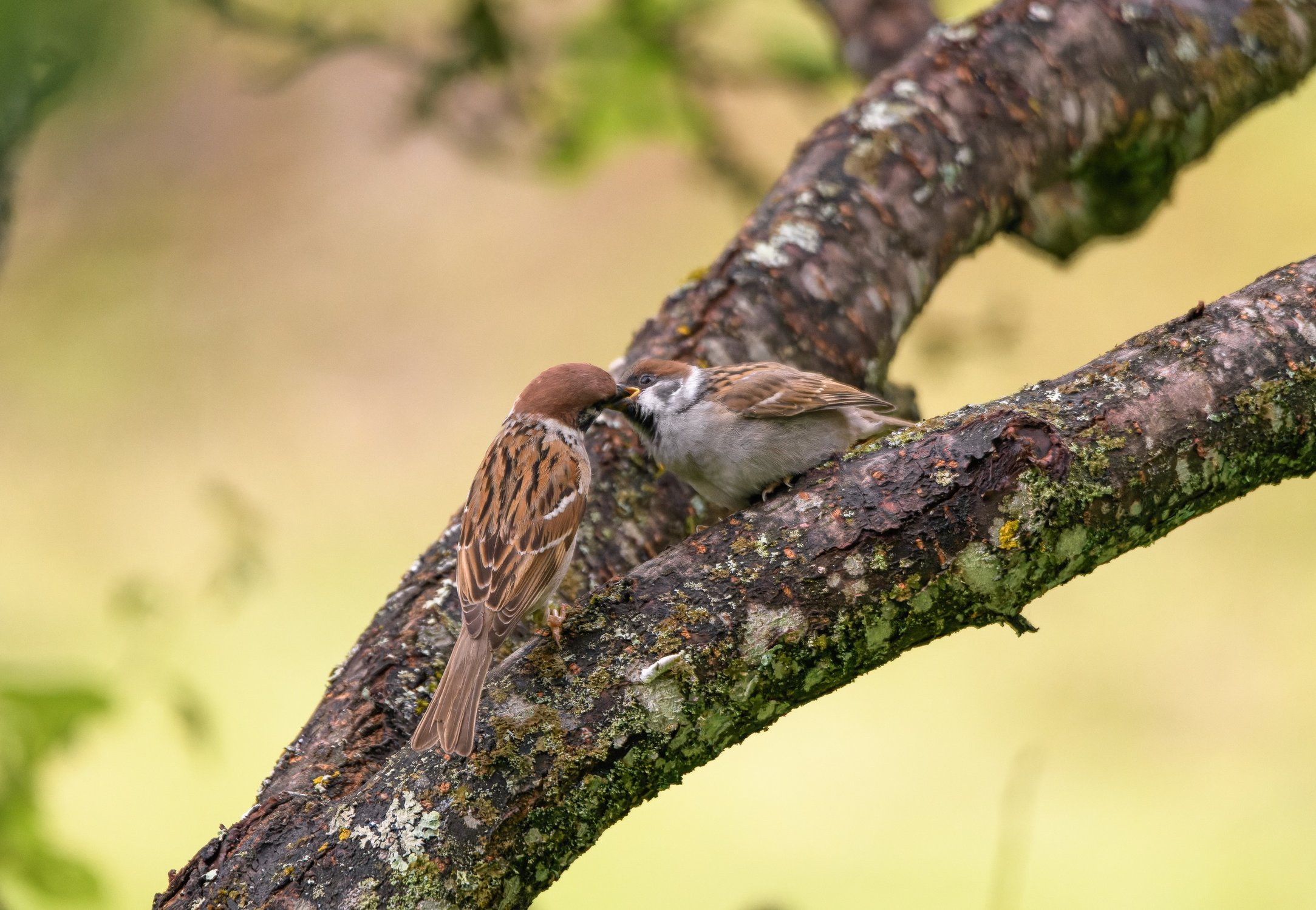 Фоторепортаж (2): Полевой воробей кормит своего желторотика