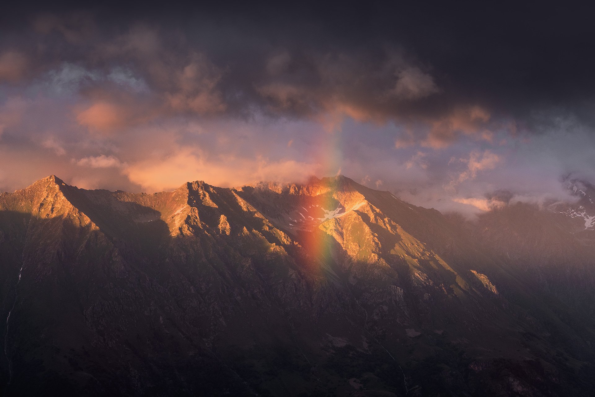 Вид с горы Мусса-Ачитара в поселке Домбай на Кавказский хребет. Республика Карачаево-Черкессия