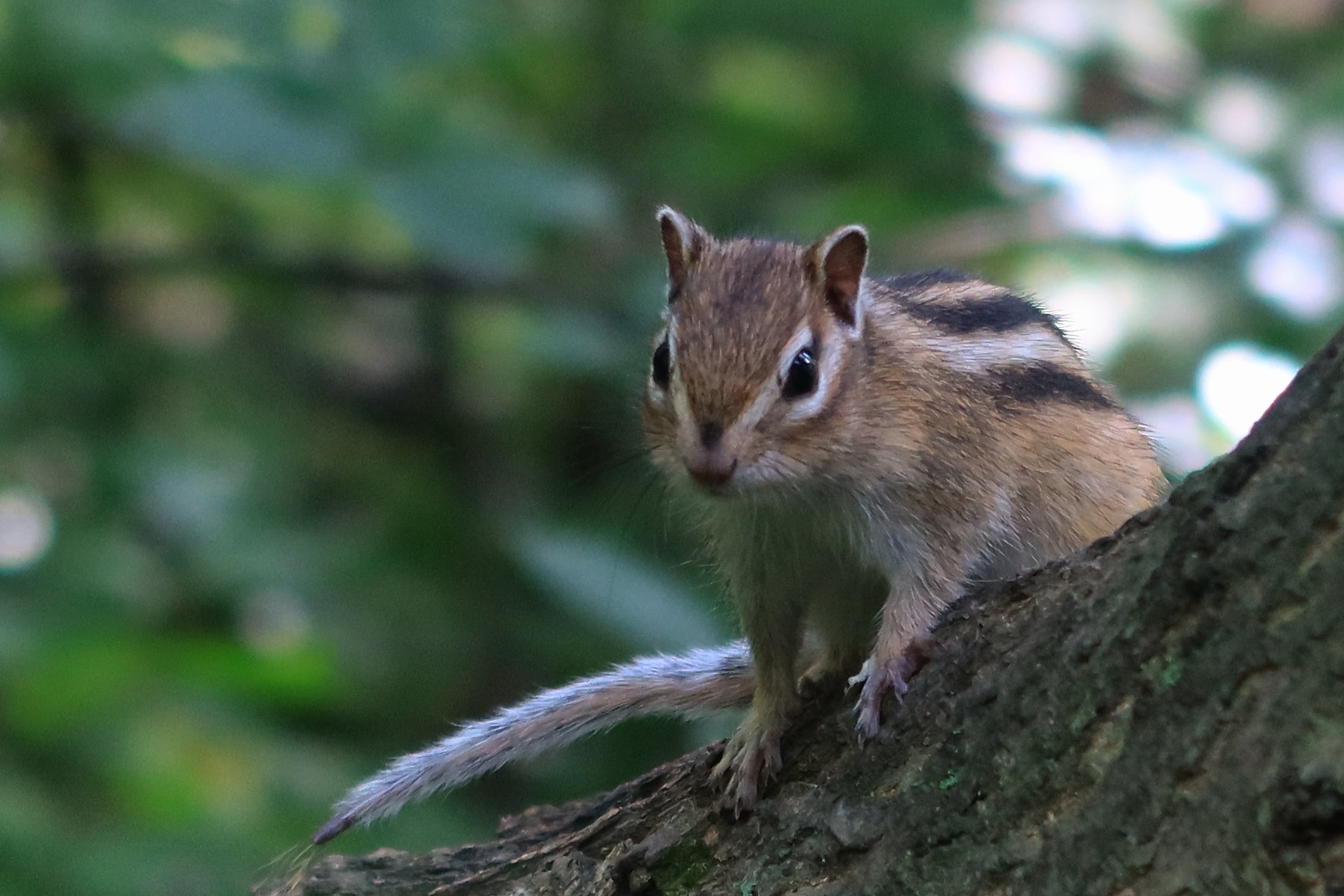 Бурундук на дереве в Новосибирском дендропарке