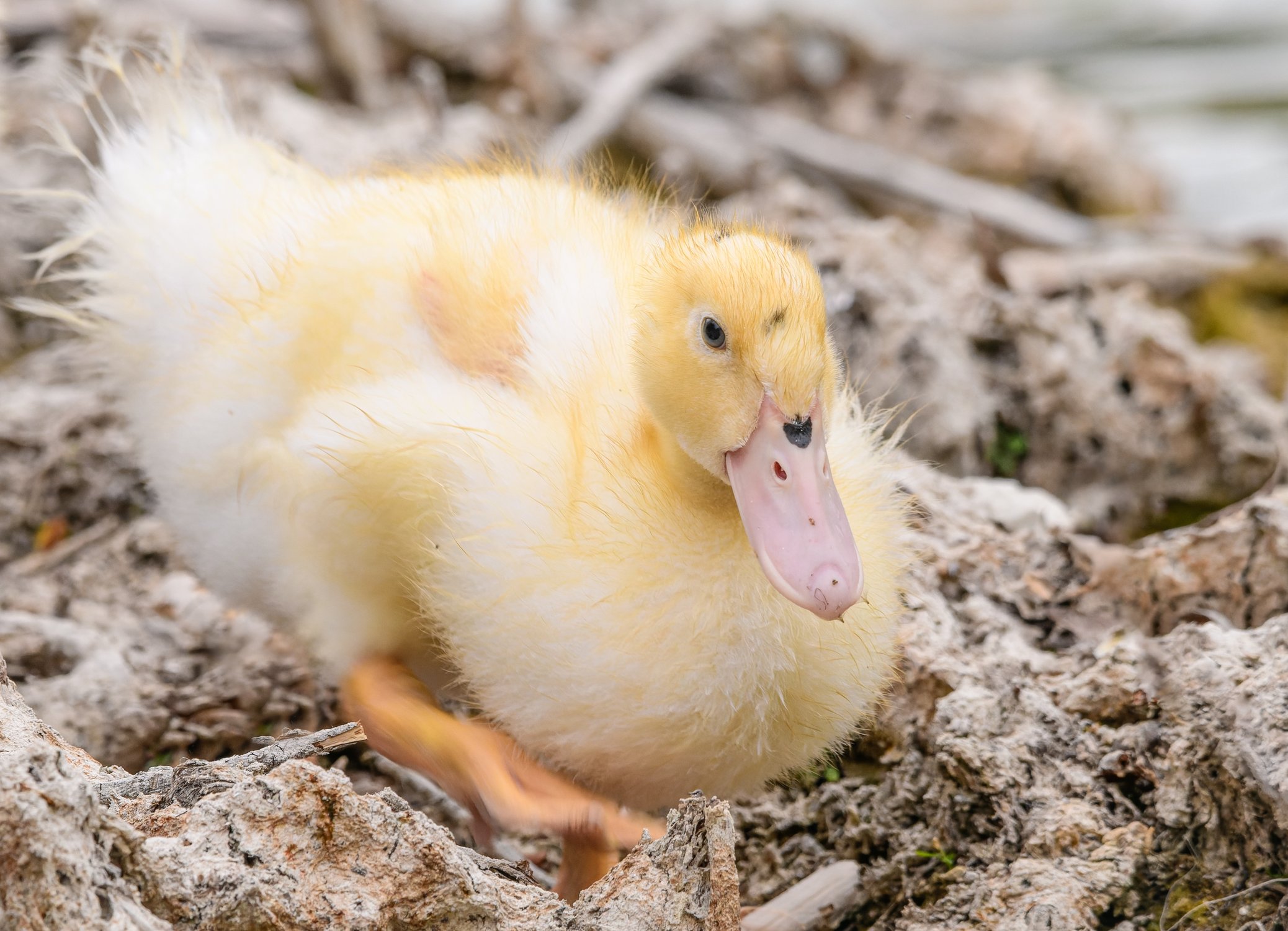 Маленький утя шагает по берегу Мангупского (Девичьего) озера.