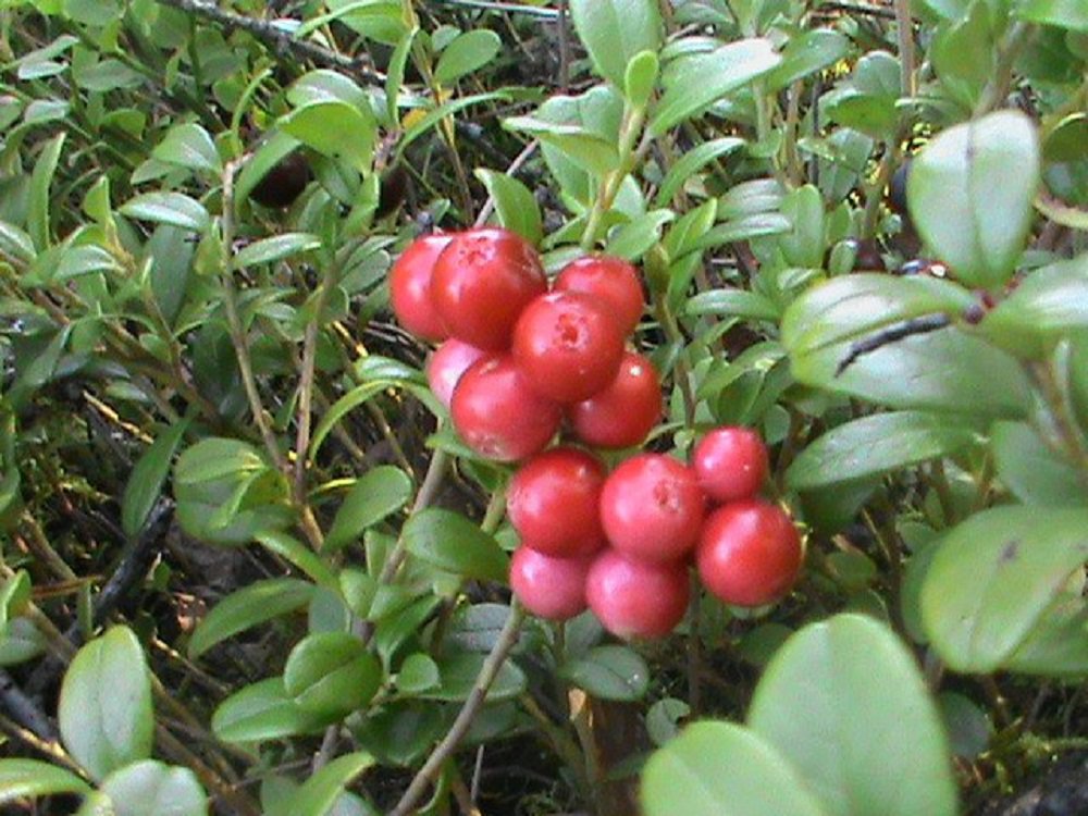 Вот такая вкусная, красивая ягода брусника растёт в наших лесах.