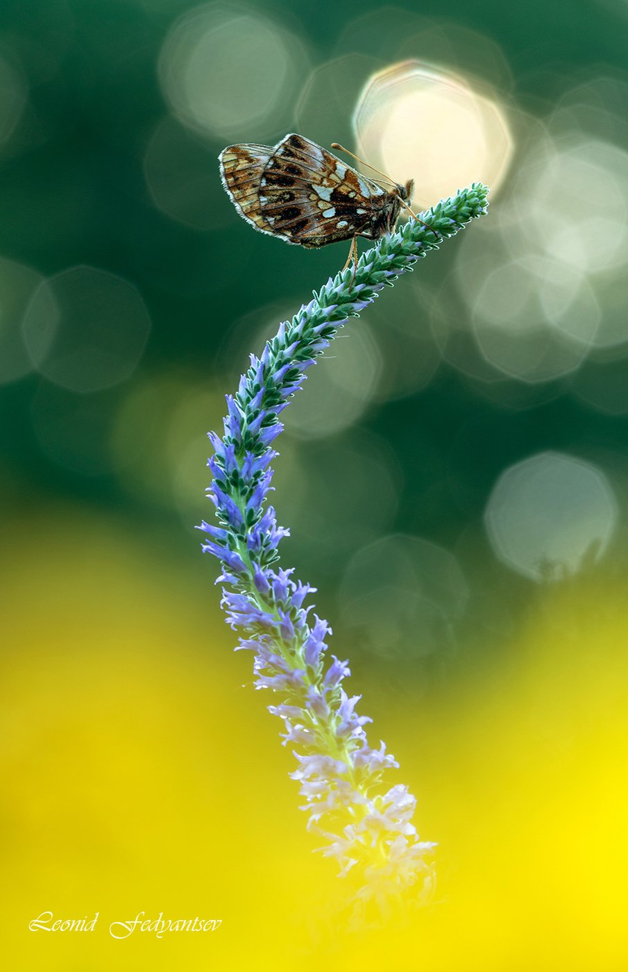 Перламутровка малая или перламутровка диа, перламутровка дия (Boloria dia) — бабочка из семейства нимфалид отдыхает на растении вероника узколистная.