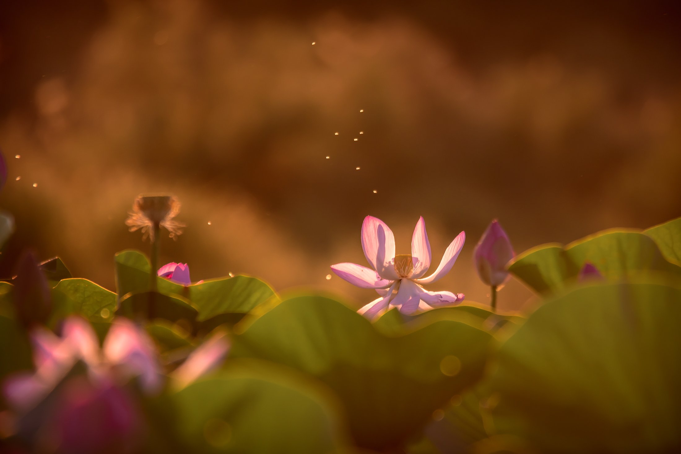Лотосы на закате и комарики