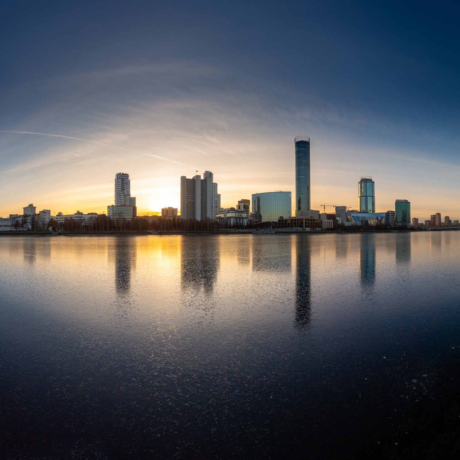 Первый лёд на Городском пруду в Екатеринбурге.