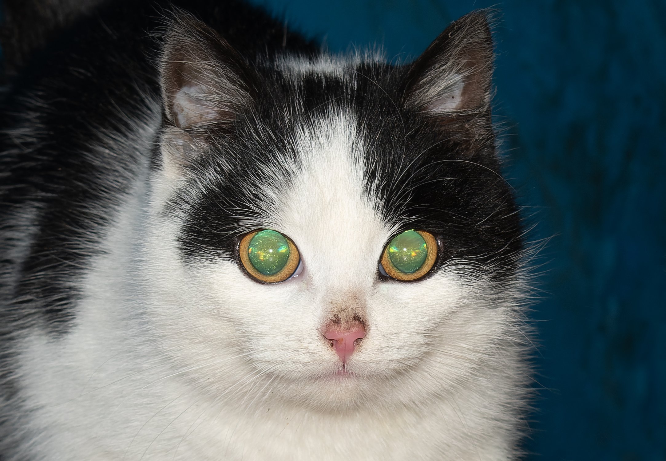 Космические глаза дикого кота (или кошки) Один из диких котов, которых мы подкармливаем, чтобы мыши нам спать не мешали. Фото вспышкой. Угличский район, декабрь 2025-го.