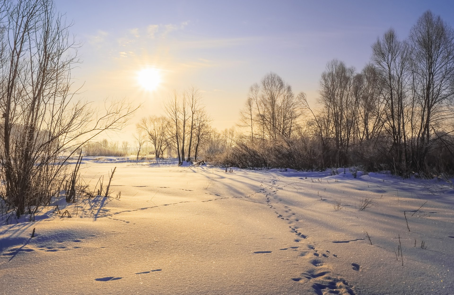 Пригород Воронежа, луг реки Усманка, зима 2018г.