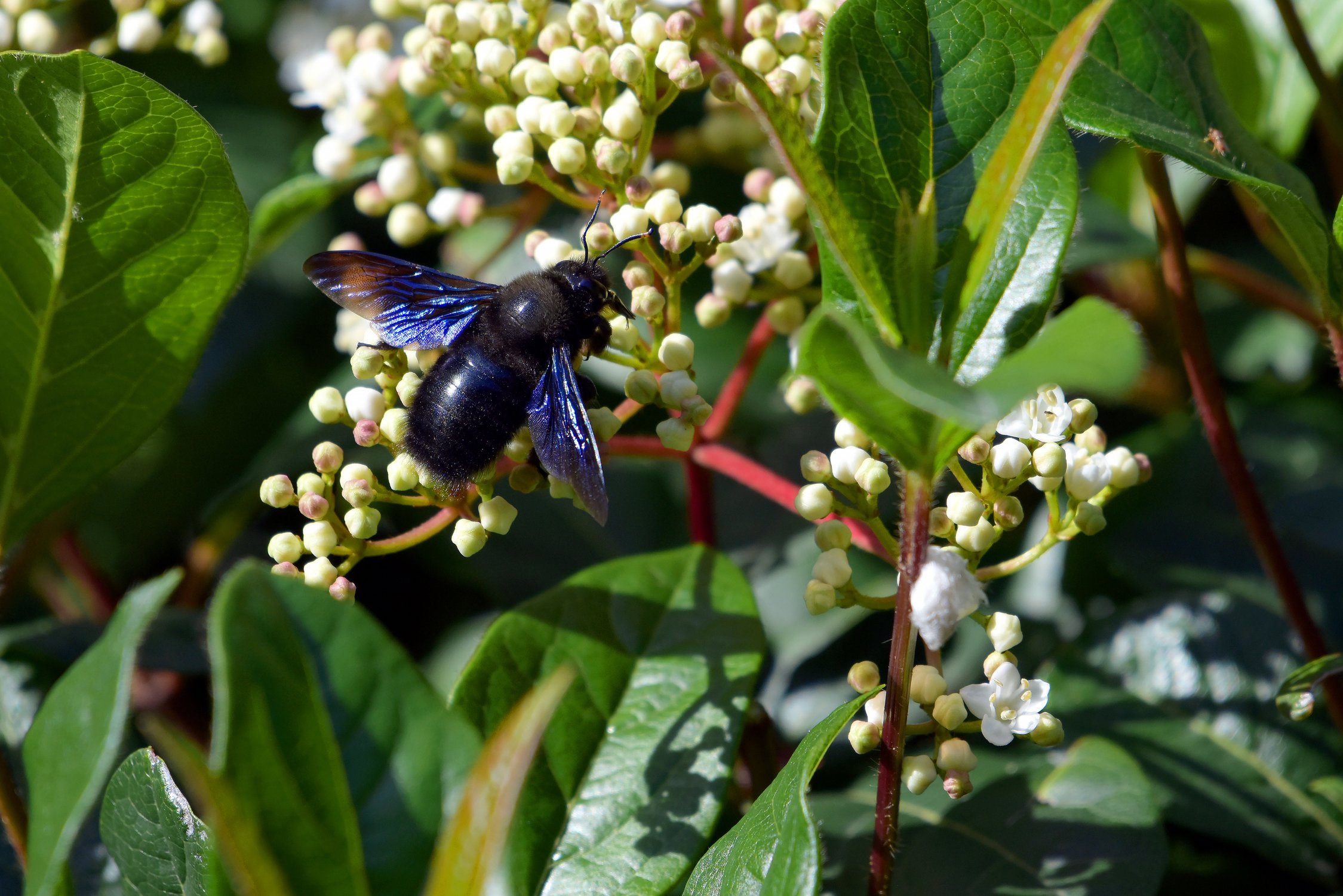 Пчела-плотник (Xylocopa Valga) угощается в тёплый февральский денёк цветами калины лавролистной.