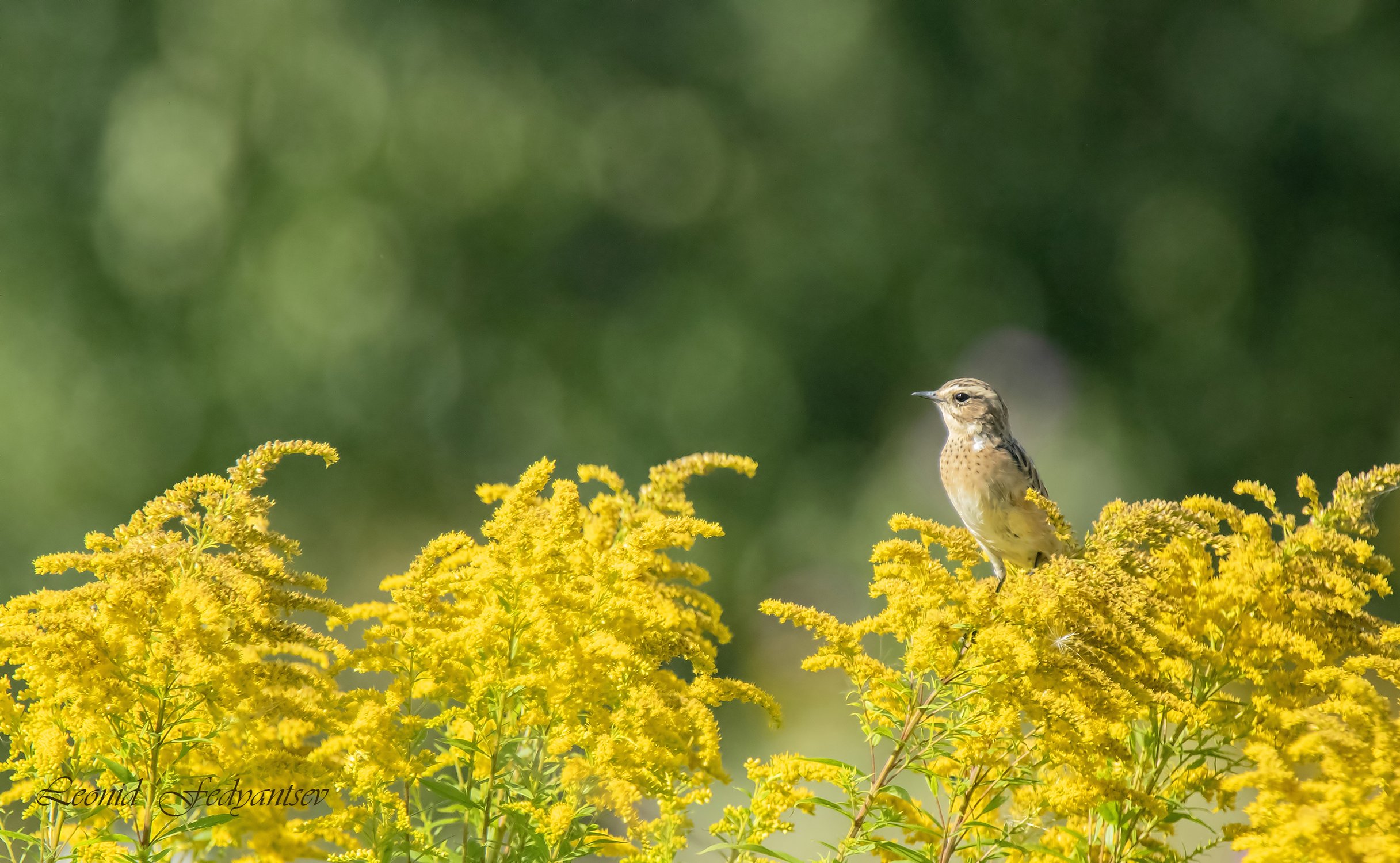 Лугово́й чека́н (лат. Saxicola rubetra) — певчая птица семейства мухоловковых. Короткохвостая птица, передвигающаяся по земле небольшими быстрыми прыжками, часто покачивающаяся и взмахивающая крыльями и хвостом. Луговой чекан размером около 13—14 см и весом около 15—20 г. Крик звучит как «туи-чек-чек» и служит для привлечения самки, а также для обозначения своей территории. Для пения и охоты луговой чекан выбирает высокие кусты и стебли. С апреля по сентябрь эта перелётная птица распространена по всей Европе. Часто можно обнаружить на заливных лугах, пастбищах, болотах и пустошах. Питается преимущественно насекомыми, червями, улитками, пауками и ягодами (обычно осенью). Среди насекомых преобладают жуки, бабочки, гусеницы и кузнечики. На снимке - птица заняла сторожевой пост на золотарнике канадском.