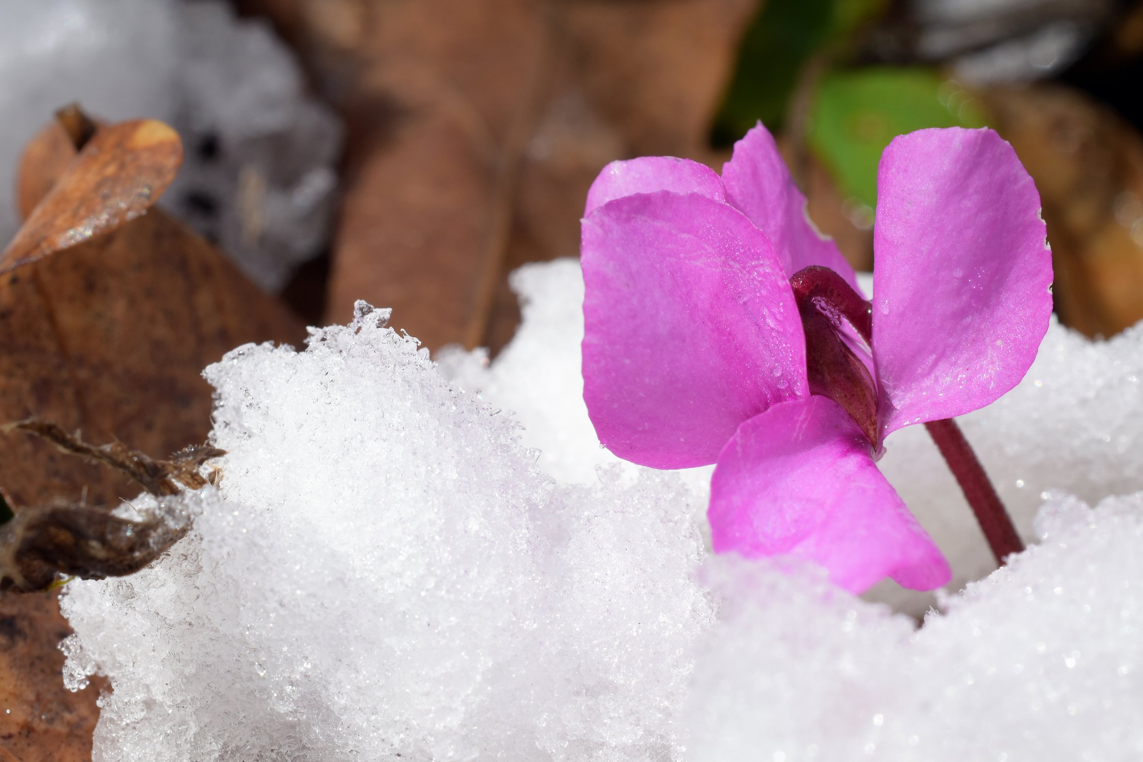 Цветение краснокнижного цикломена косского в Крыму. Он цветёт в зимнее время, в январе-феврале. Единственная популяция цикламена косского в Крыму охраняется в ботаническом заказнике «Кубалач».