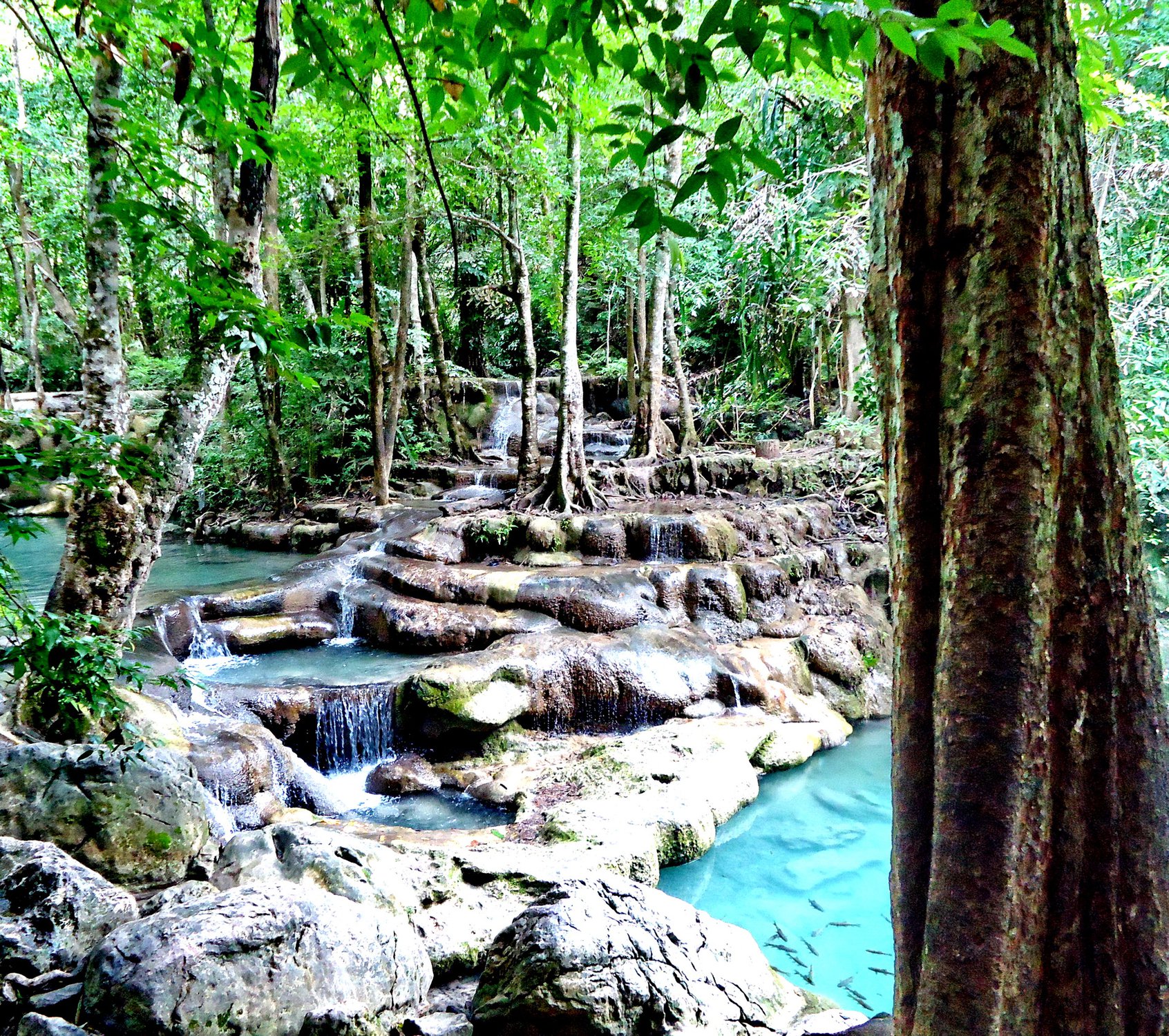 место сказочной красоты возле тайского водопада Эраван