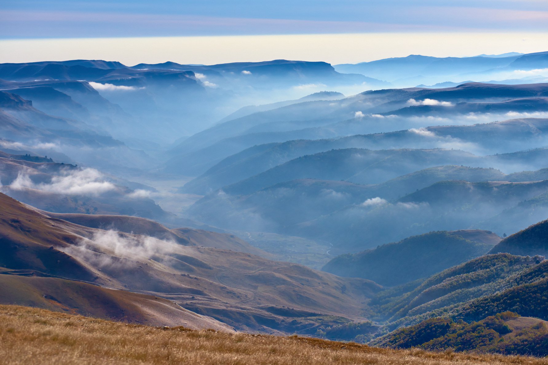 Плато Бермамыт в рассветной туманной дымке