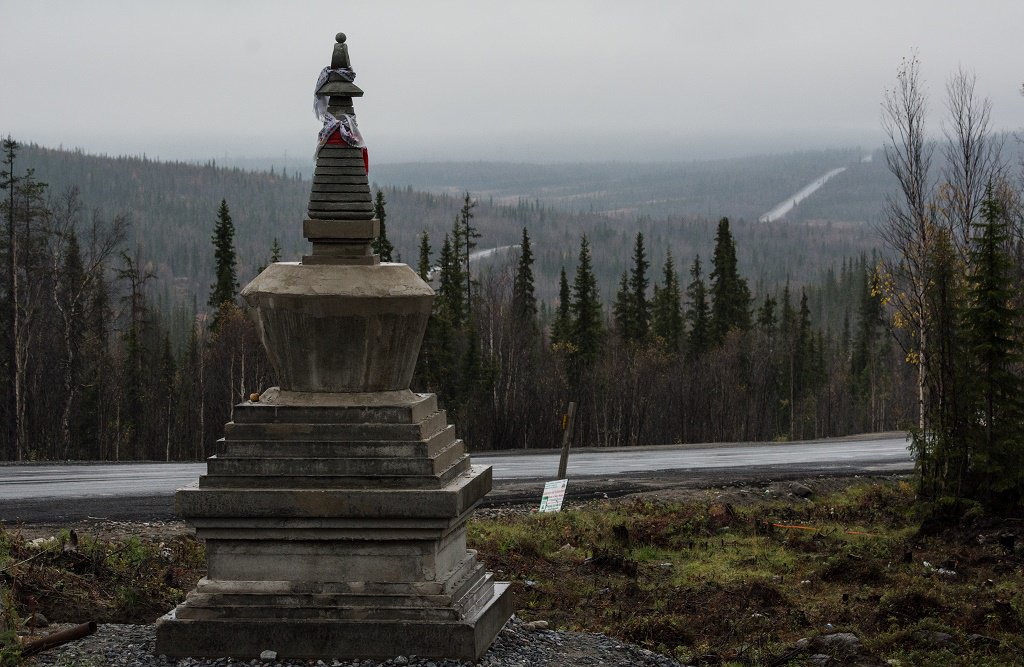 Самая северная в мире Ступа Просветления недавно воздвигнута в Мурманской области около дороги Апатиты-Кировск. На фото - в процессе строительства.