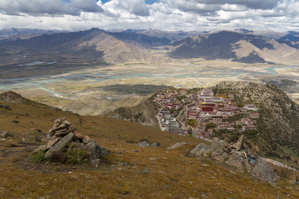 Вид на монастырь Ганден , Тибет , высота 4500 м