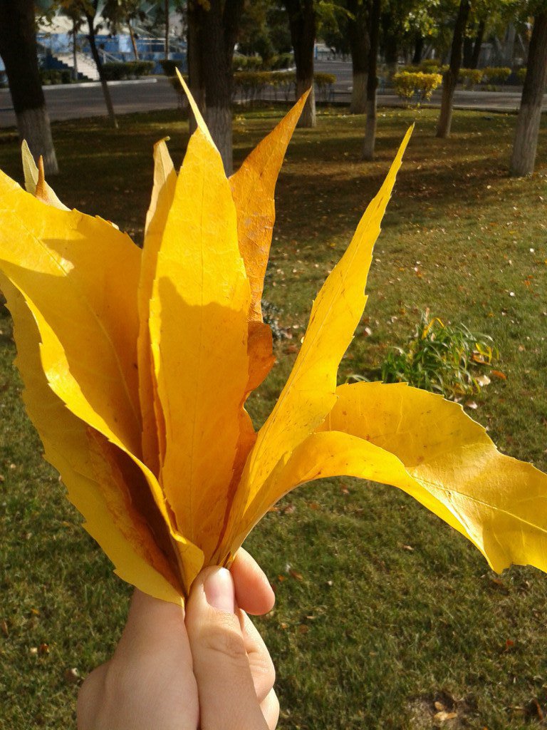 Физкультура проходит на стадионе, вот и решила собрать листву