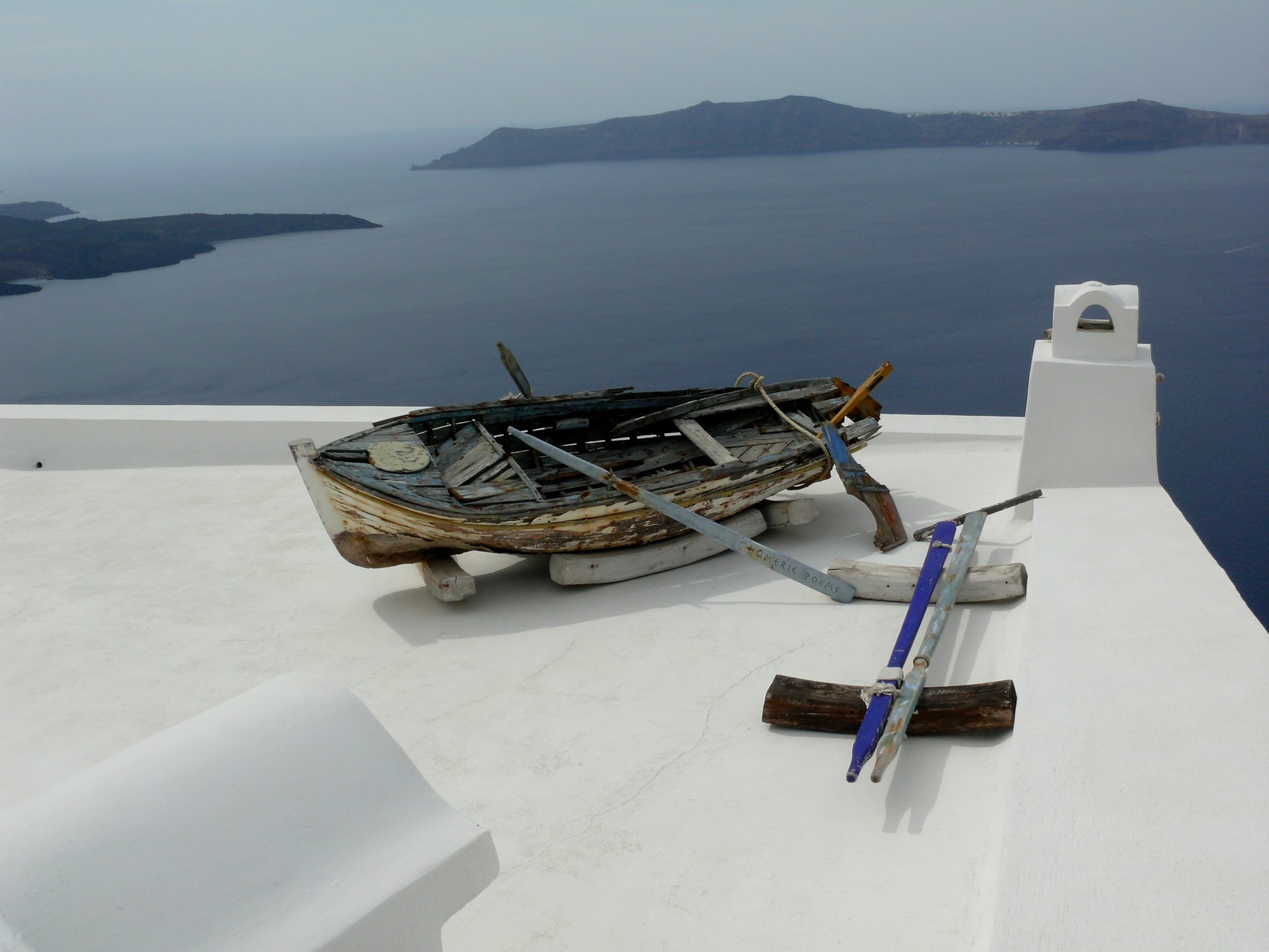 На горизонте виднеются острова Палеа-Камени, Неа-Камени