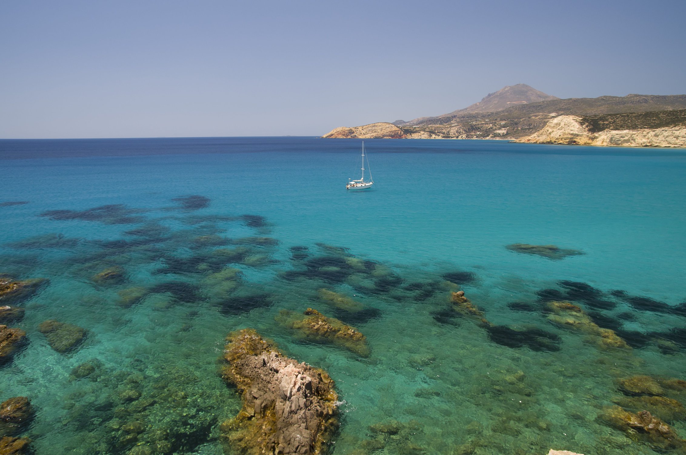 яхта у берегов о.Милосгреческие каникулы