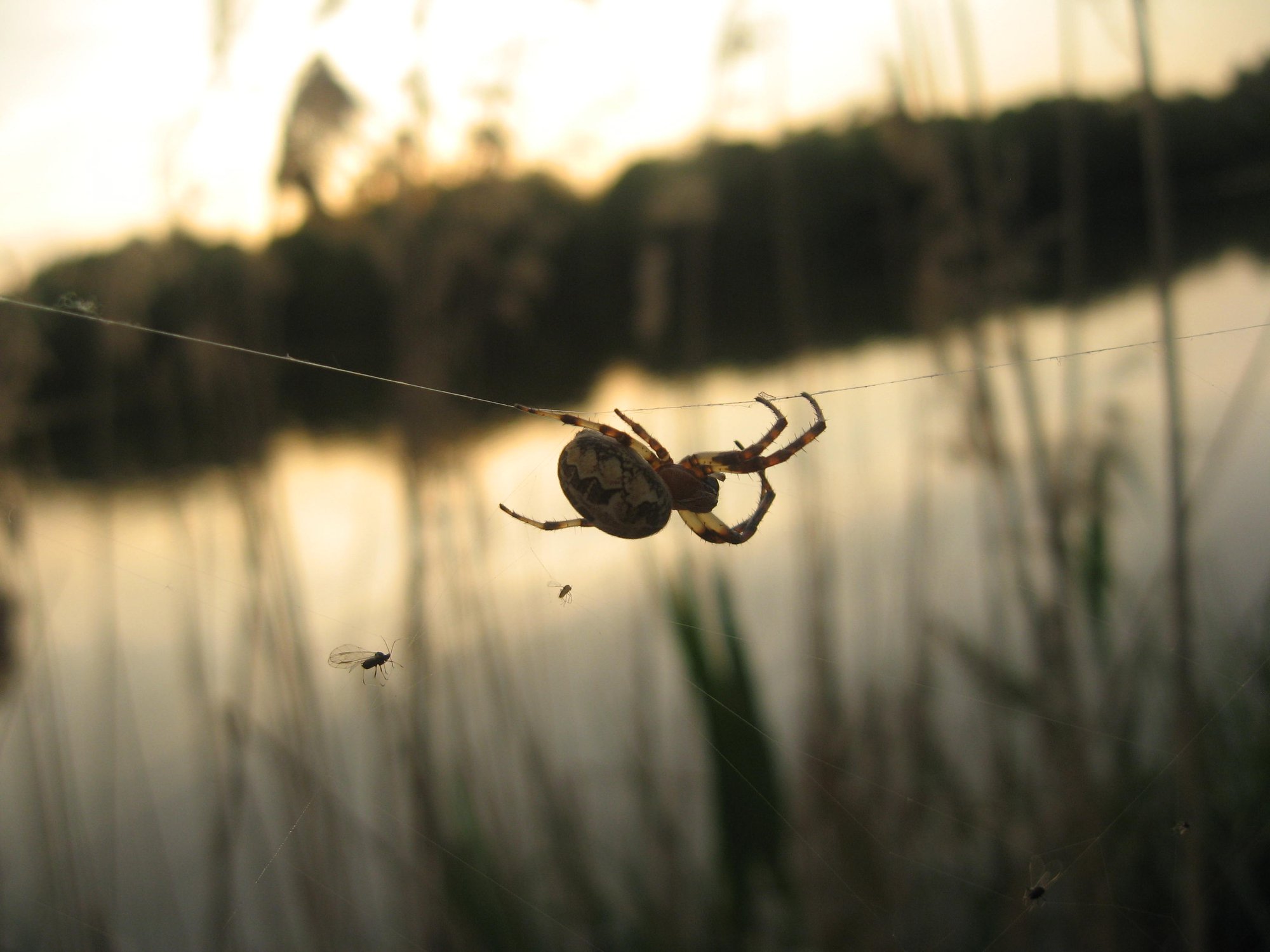 Раскинув сети сотканные из паутины паук-крестовик удачно поохотился.