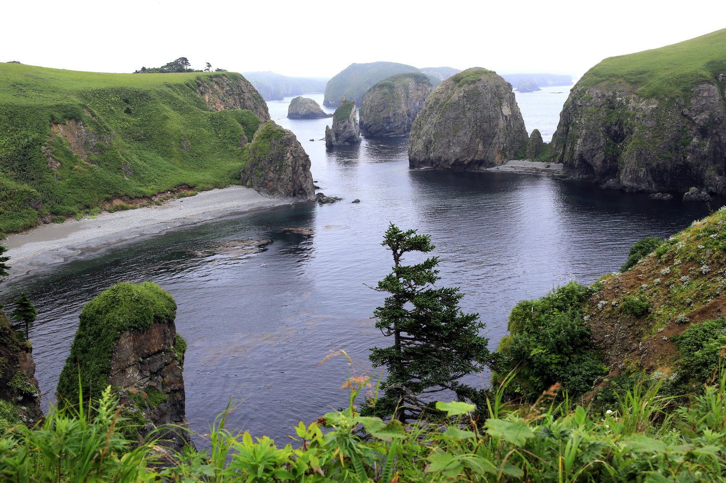 Многочисленные острова создают шикарный вид живописного берега Шикотана.