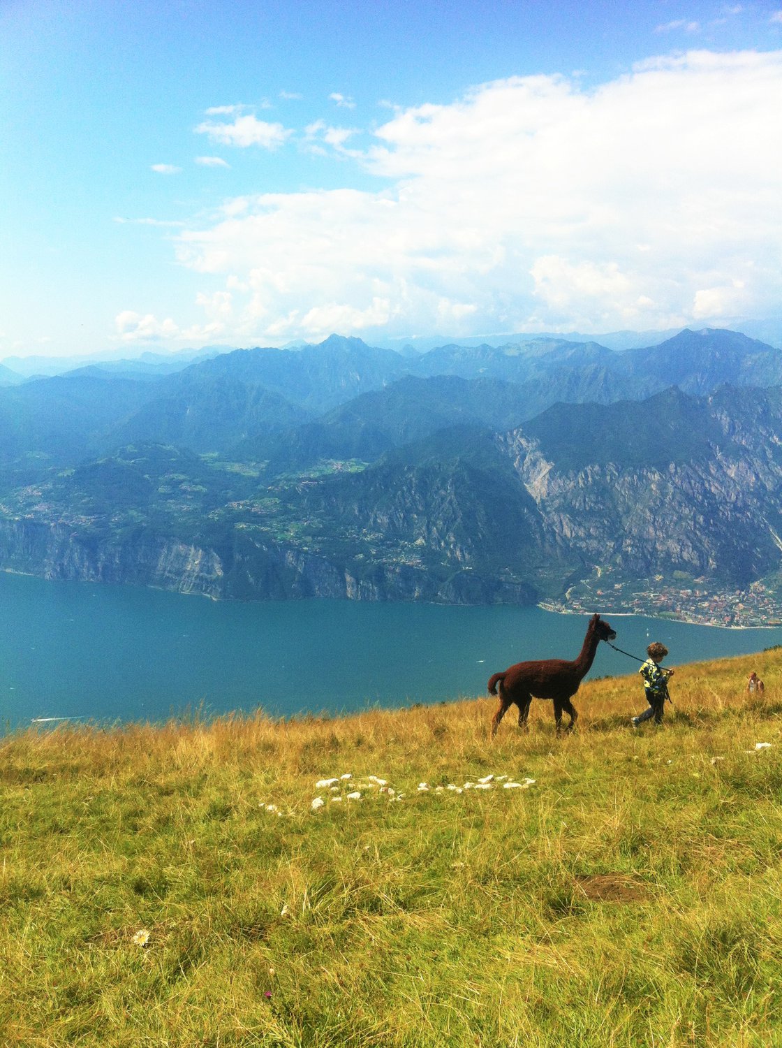 Ничего необычного... Просто малыш выгуливает ламу на высоте 1800 м. Италия. Монте-Бальдо.