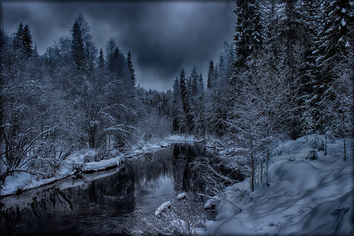 Ощущение чистейшего,хрустальной чистоты,воздуха !Колорит,внешне скудного на краски,зимнего севера.Синтез и гармония стихий,студёной воды,чистейшего снега,серые,наполненные тревогой облака уравновешены спокойствием таёжной чащи.Картина воссоздаёт,какое то далёкое,забытое чувство из детства.Когда нам читали сказки,наполненные восторгом и тайной !Хочется смотреть на неё бесконечно !Спасибо автору !Творческих ему дерзаний и успеха !