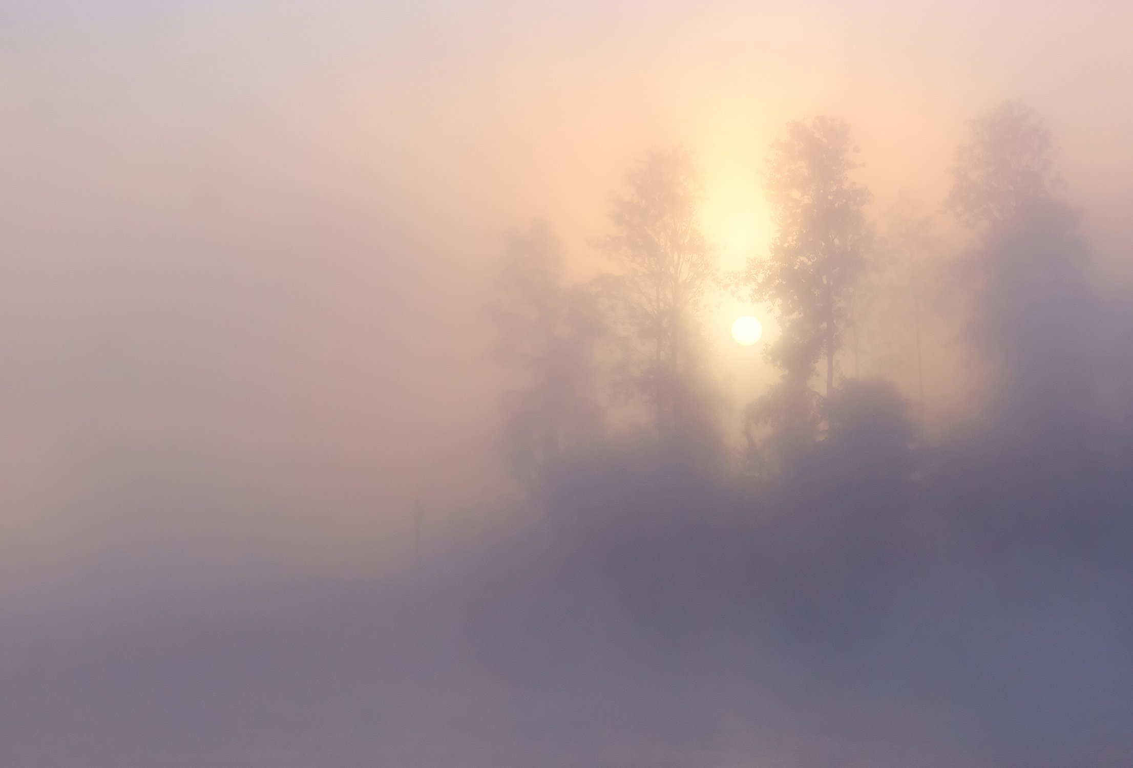 В августе на озере Селигер по утрам часто бывают туманы. Восходы солнца выглядят просто волшебно