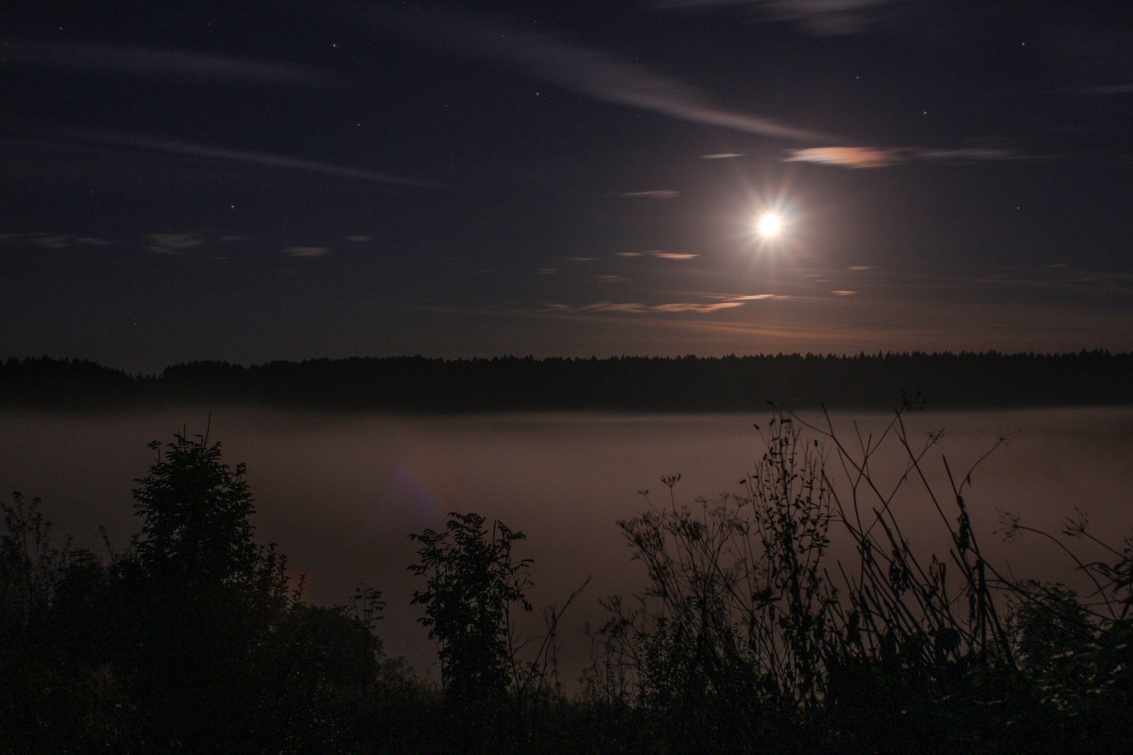 Густой туман над рекой в деревне Никола-Ленивец Калужской области