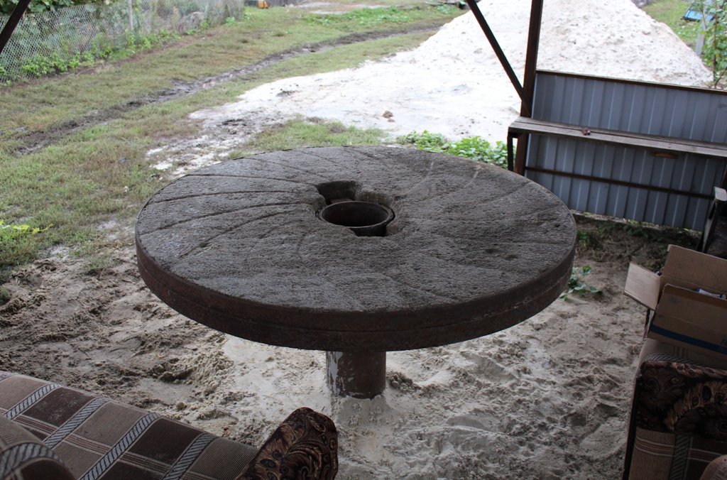 Старинный жернов от ветряной мельницы.