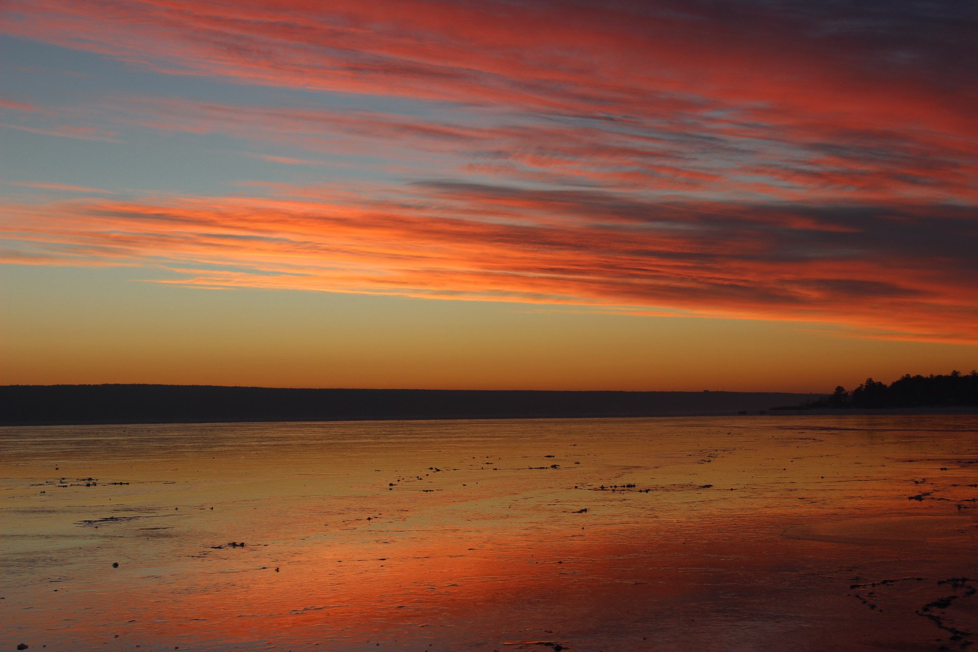 Пейзаж. Первые морозы, молодой лед. Сурское водохранилище Пензенской области.