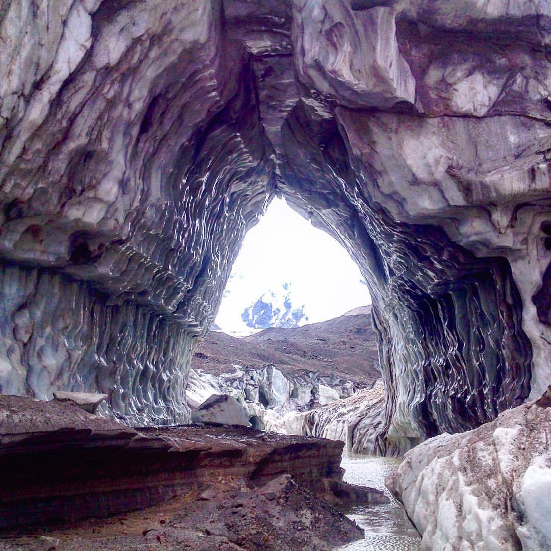 Арка в леднике,у подножия пика Ленина, на Памире.