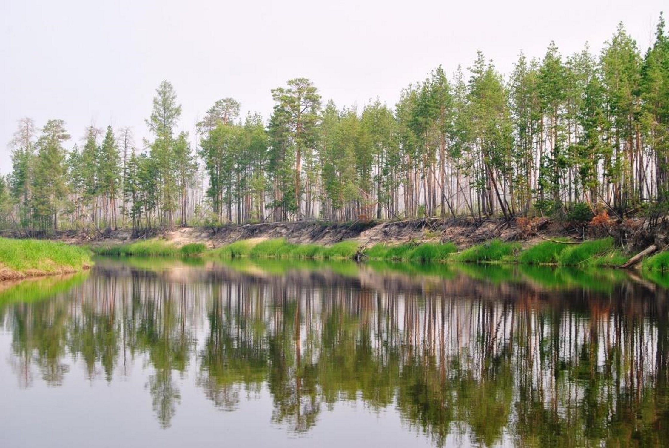 Лето 2016 года, жара. Редкие деревья на берегу.