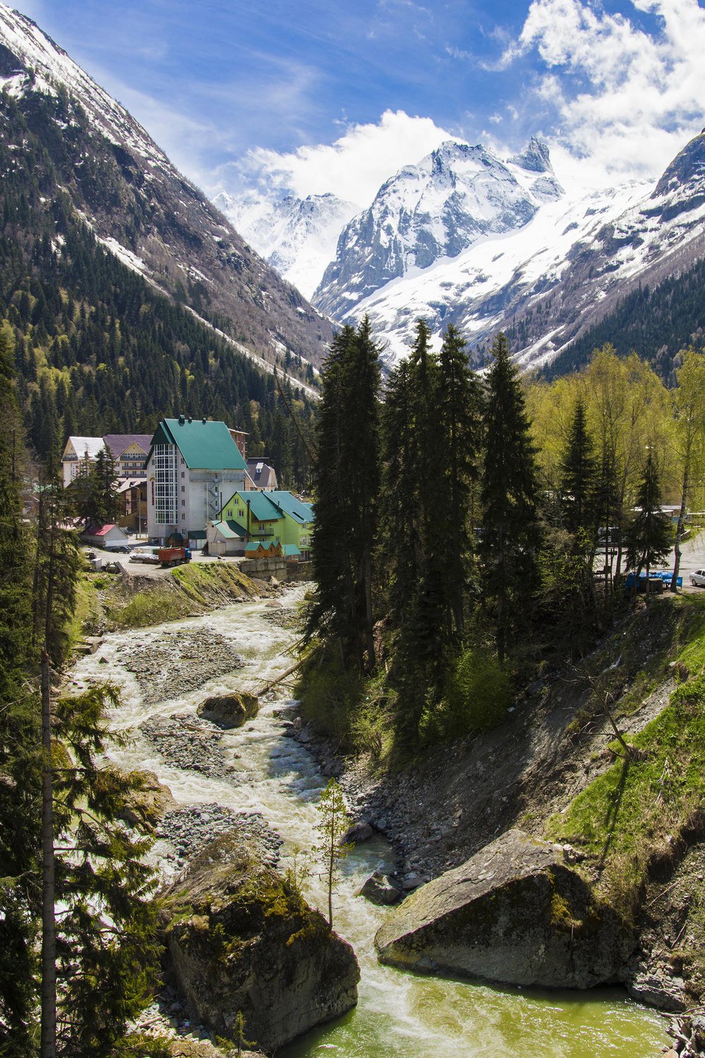 Вот такой живописное местечко открывается если на минутку спустится с гор и посмотреть снизу вверх.