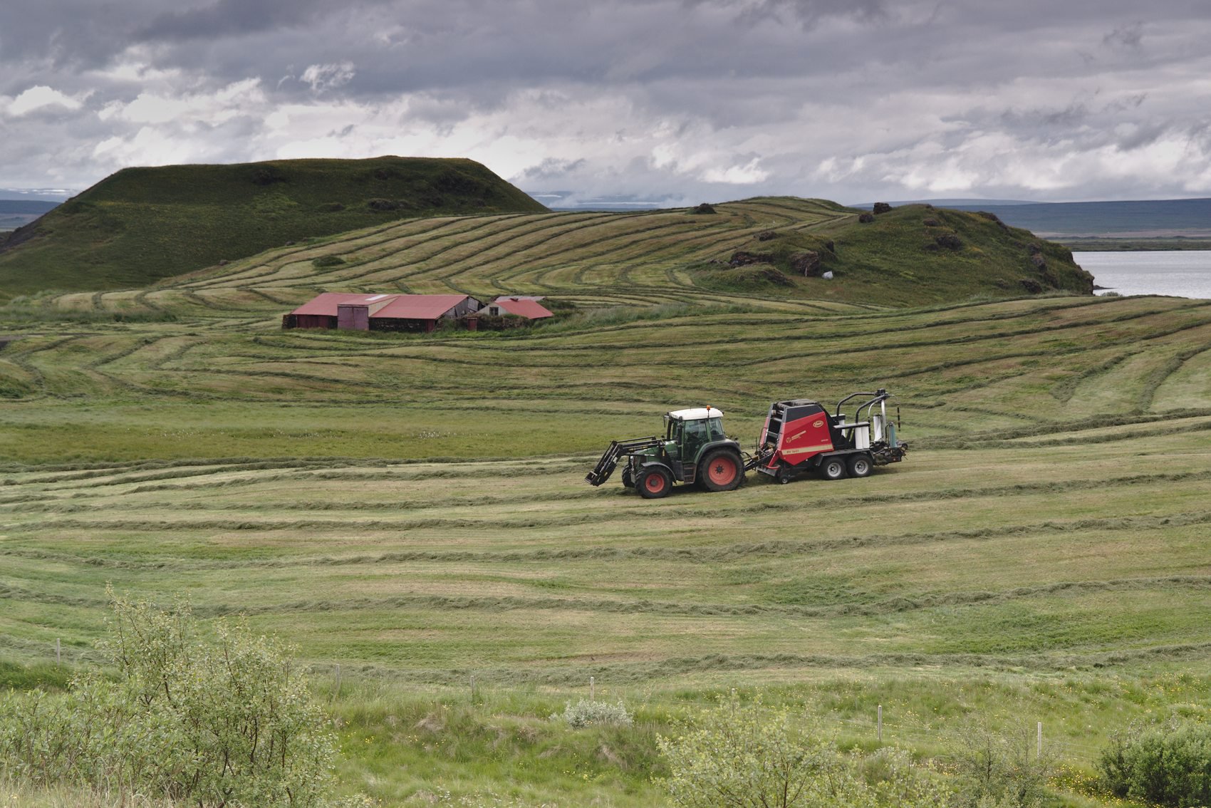 Немногие участки Исландии, не занятые горами и вулканическими ланшафтами активно используются под сельхозугодья. Почти всё побережье, даже с самым, казалось бы неблагоприятным рельефом разделено на сенокосы и пастбища.